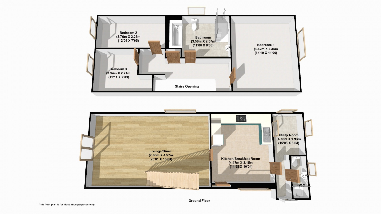 Generous and welcoming with UPVC double-glazed patio doors to rear aspect giving access to the garden and UPVC double-glazed bay window to the side. Character feature fireplace with Feature fireplace with cast iron surround and tiled hearth housing large wood burner. Solid wood flooring throughout. Three radiators and power points. TV point and BT point. Open carpeted stairwell to the first floor.