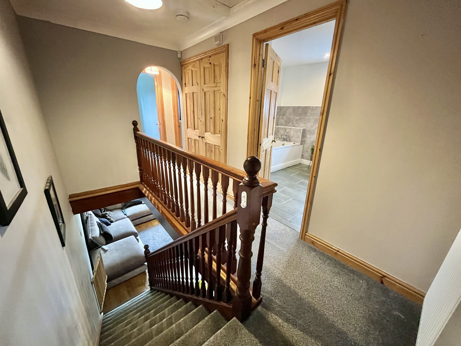Galleried style with central lighting. Carpeted with Access to loft space. Doors leading off. Radiator and power point. Double doors lead to a large airing cupboard with an abundance of storage and shelving.