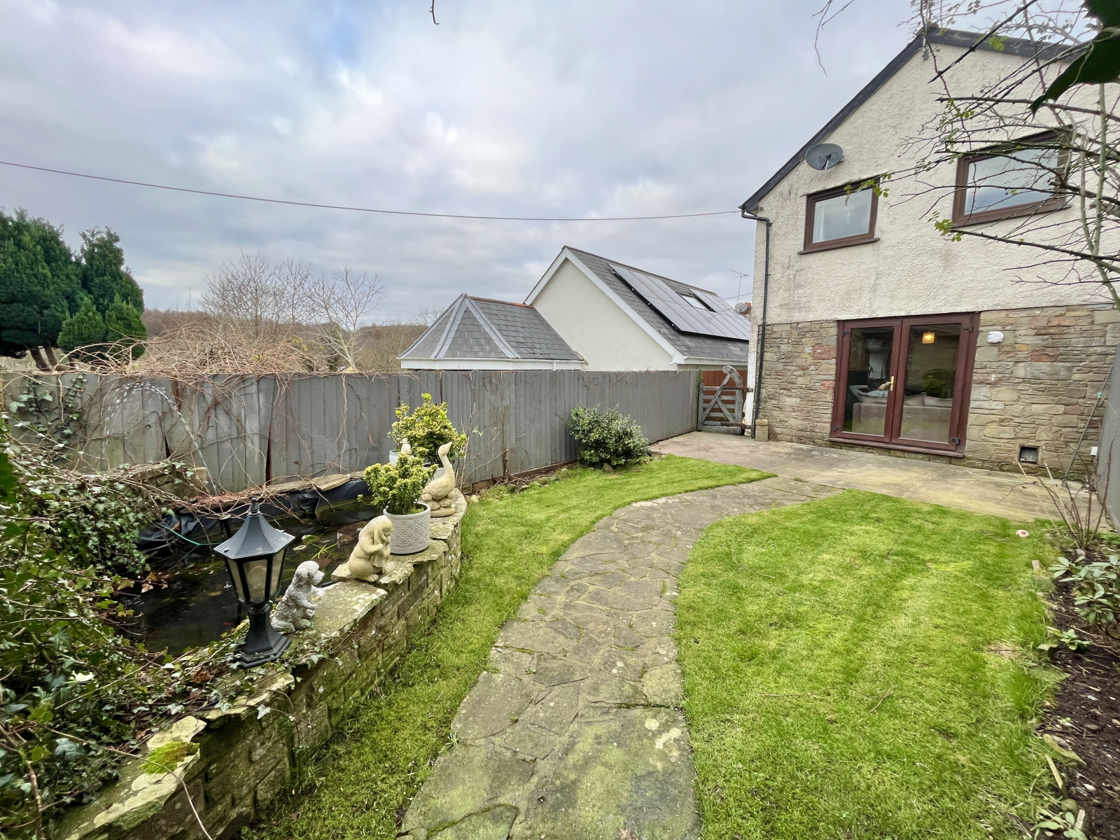 To the Rear the large and beautiful gardens are private and well maintained. The initial garden can be accessed from the patio doors off tghe lounge and has a seating area and is mainly laid to lawn with borders of flowers and shrubs with an ornamental pond with water feature. Charming pathway leads through to the larger secluded garden. Laid to lawn with additional seating area to enjoy outdoor living. This part of the garden is a peaceful oasis with fenced and hedged boundaries.