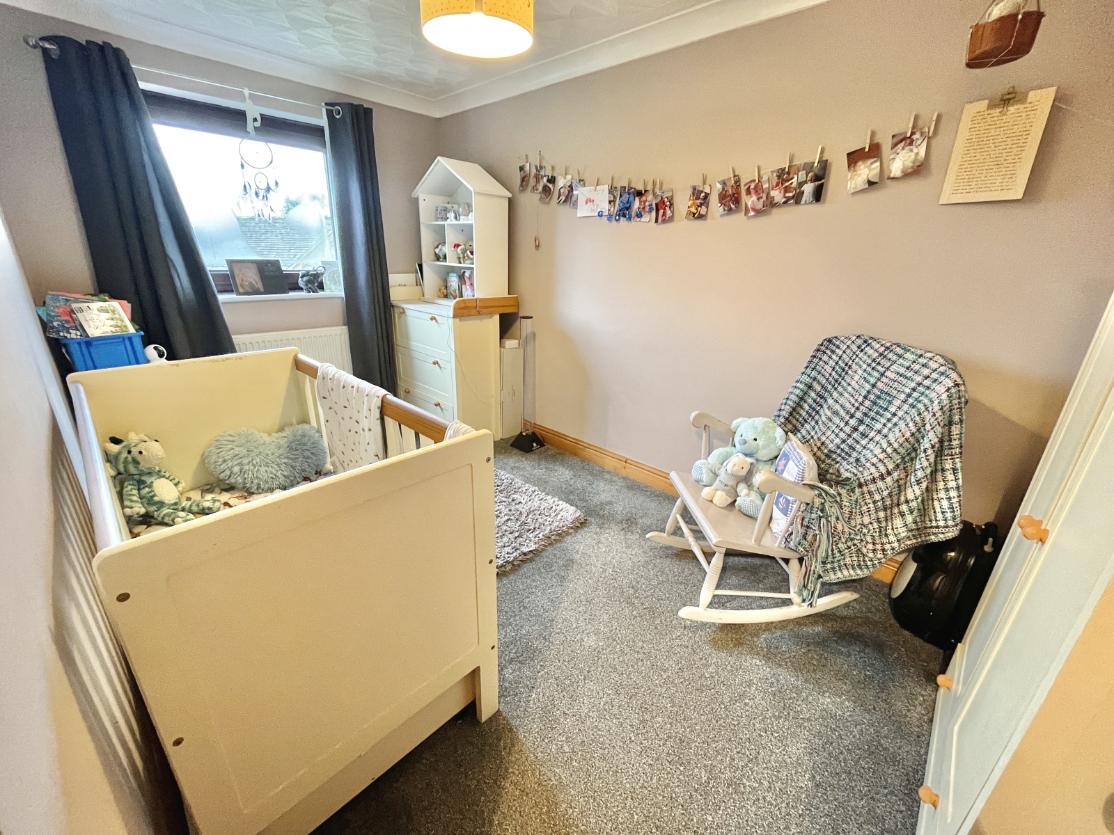 UPVC double-glazed window to rear elevation overlooking the garden and woodland beyond. Carpeted with power points. Central lighting and radiator.