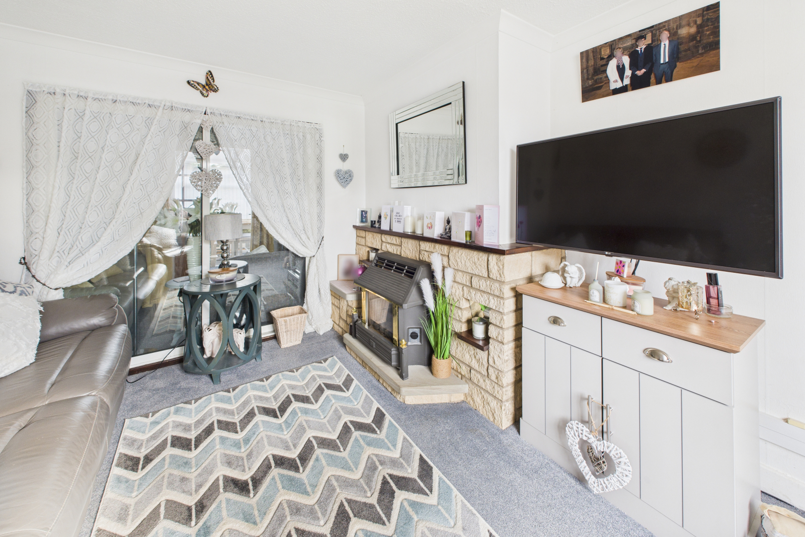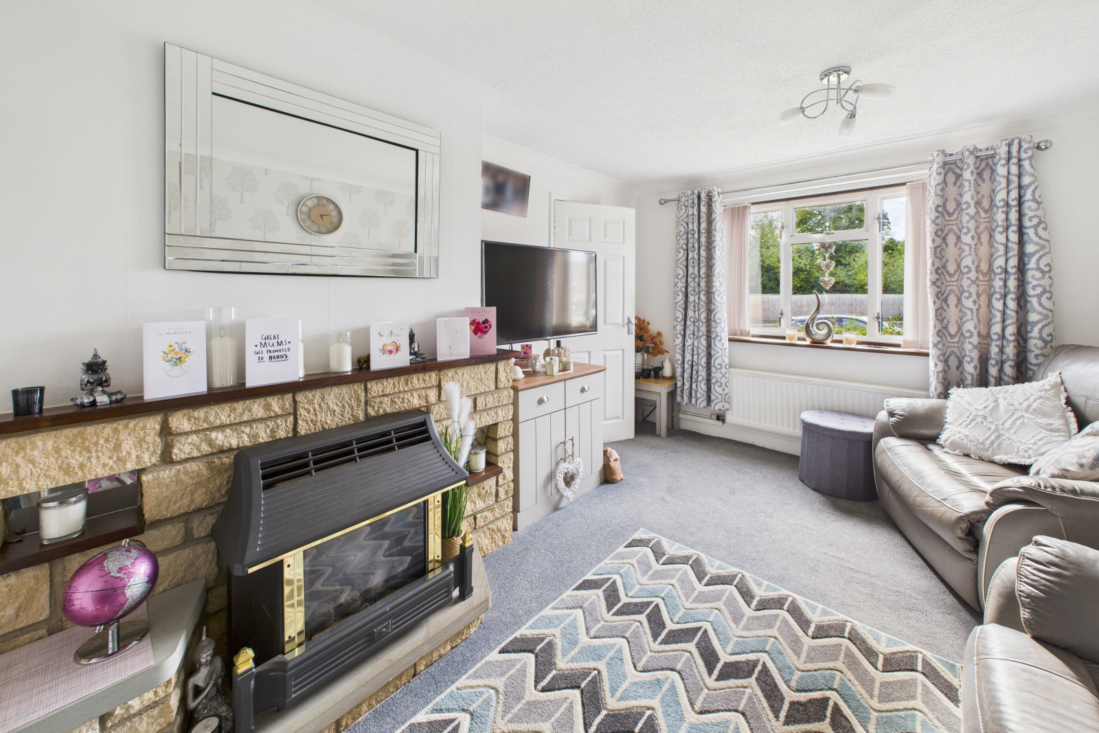 Lounge 13'12'' x 10'9'' Aluminium-framed window to the front elevation with radiator beneath. Carpeted flooring and feature Forest Stone fireplace with gas fire. Ceiling lighting, power points, and double sliding doors leading to the snug.
