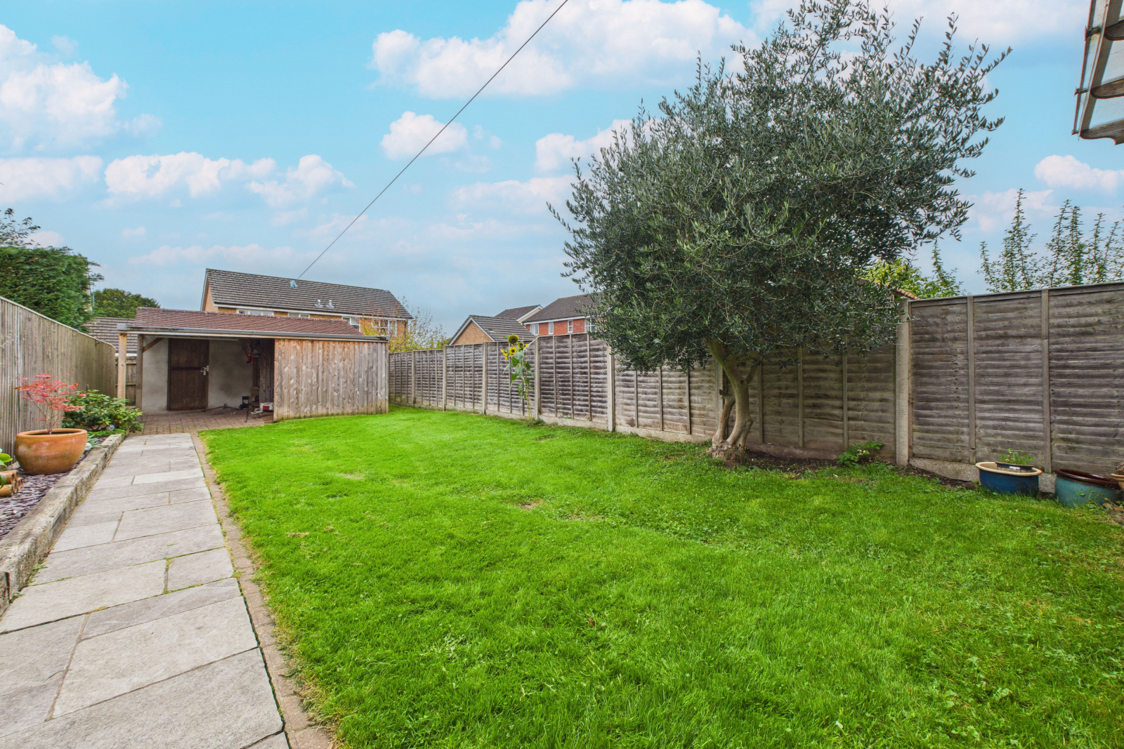 - Sunny south-facing garden with covered pergola and raised slate-dressed borders