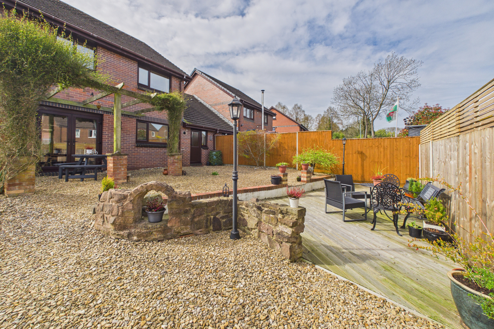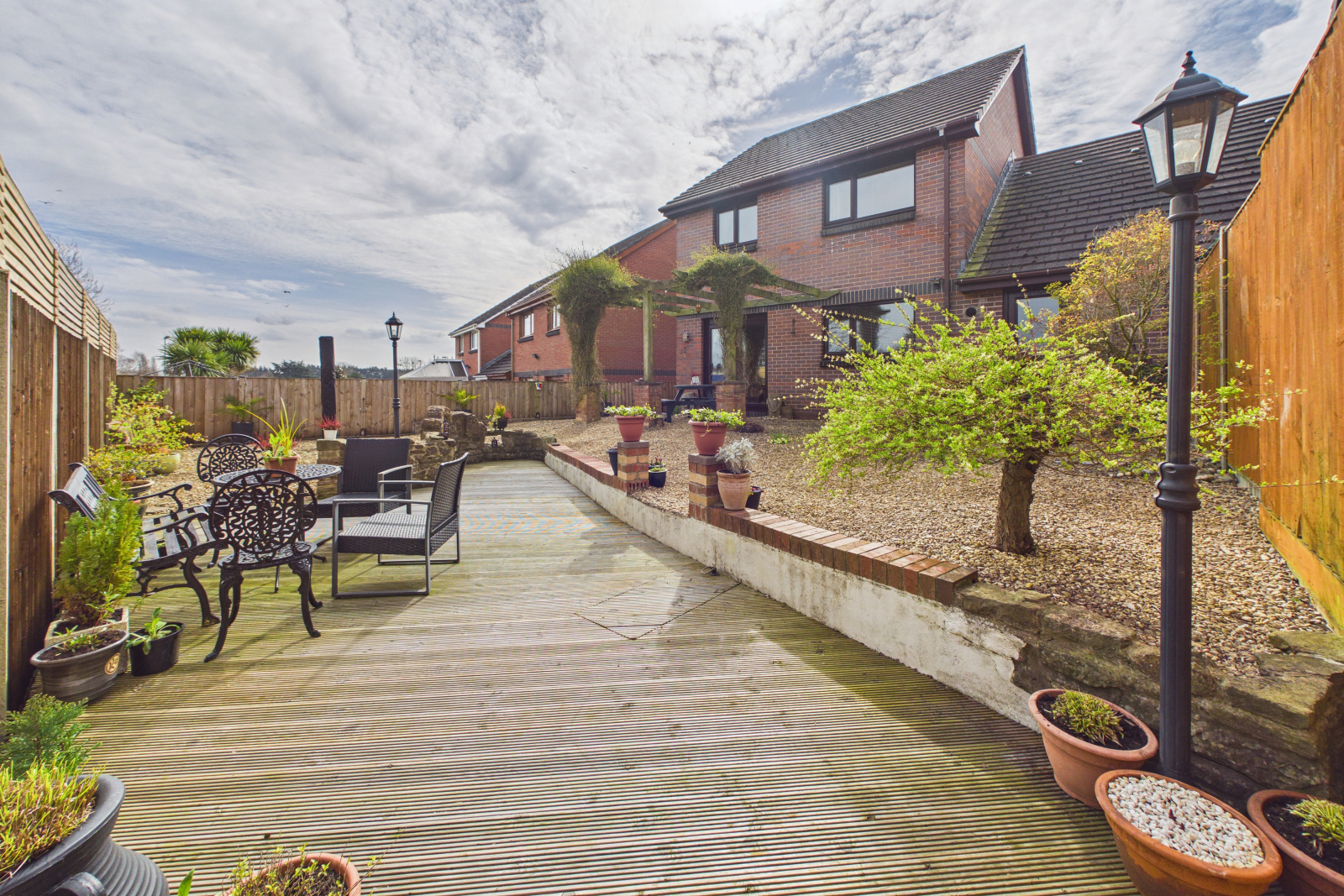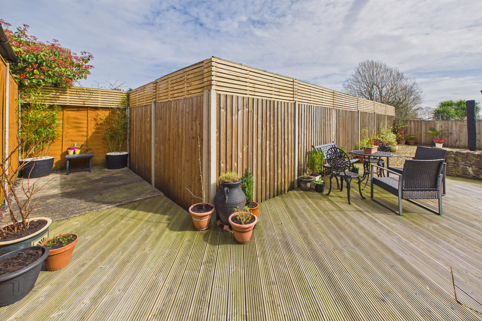 - Private, low-maintenance rear garden with decked seating area for outdoor living