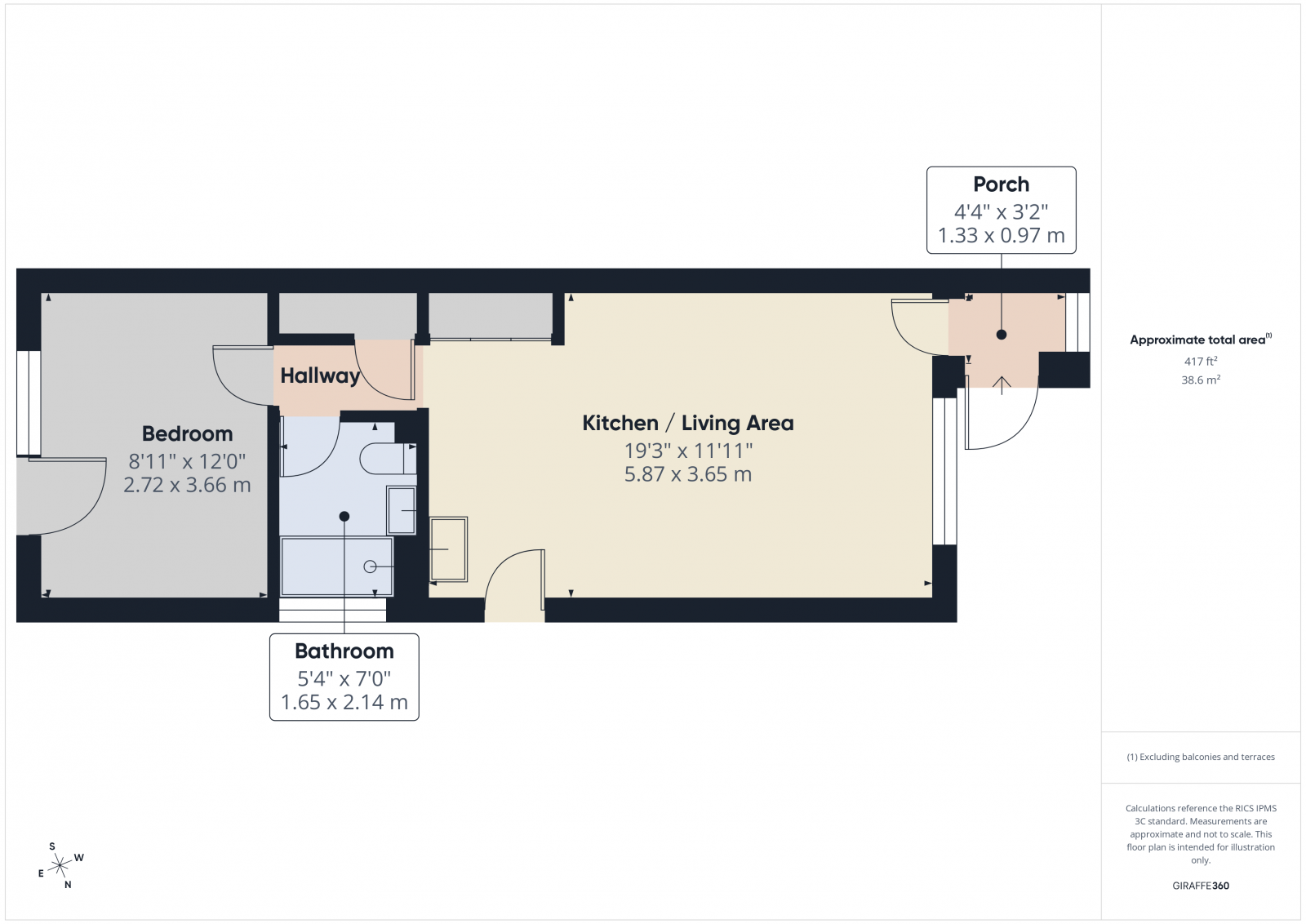 Entrance - 4'4" x 3'2" (1.33 x 0.97m):