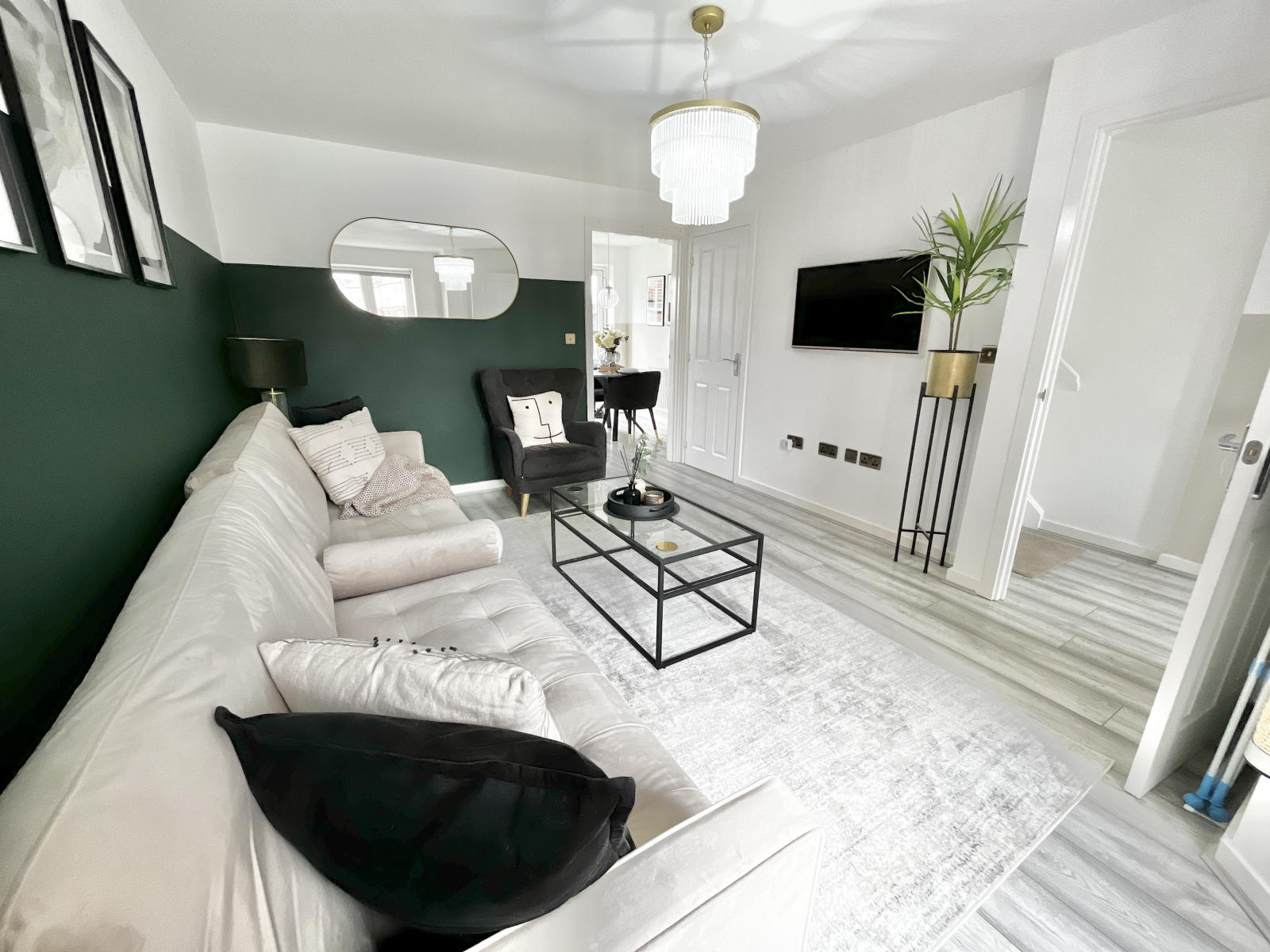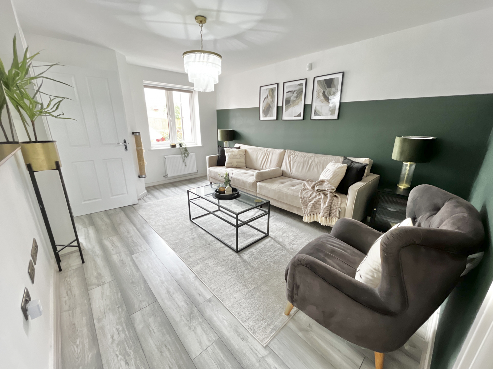 Beautifully decorated with UPVC double-glazed window to front elevation and radiator under. Wood effect flooring throughout and pendant ceiling light. Chrome effect power points and light switches. Door to under stairs storage cupboard.