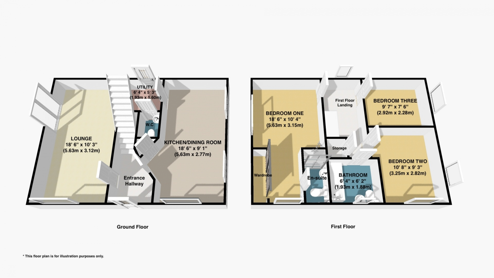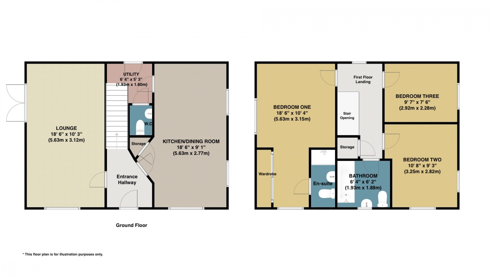 Bedroom One 18' 6'' x 10' 4'' (5.63m x 3.15m) UPVC double-glazed windows to front and side elevations with garden and countryside outlook. Carpeted throughout with two radiators. Two central ceiling lights and triple fitted wardrobe with mirrored sliding doors having hanging rails and shelving. Range of power points.