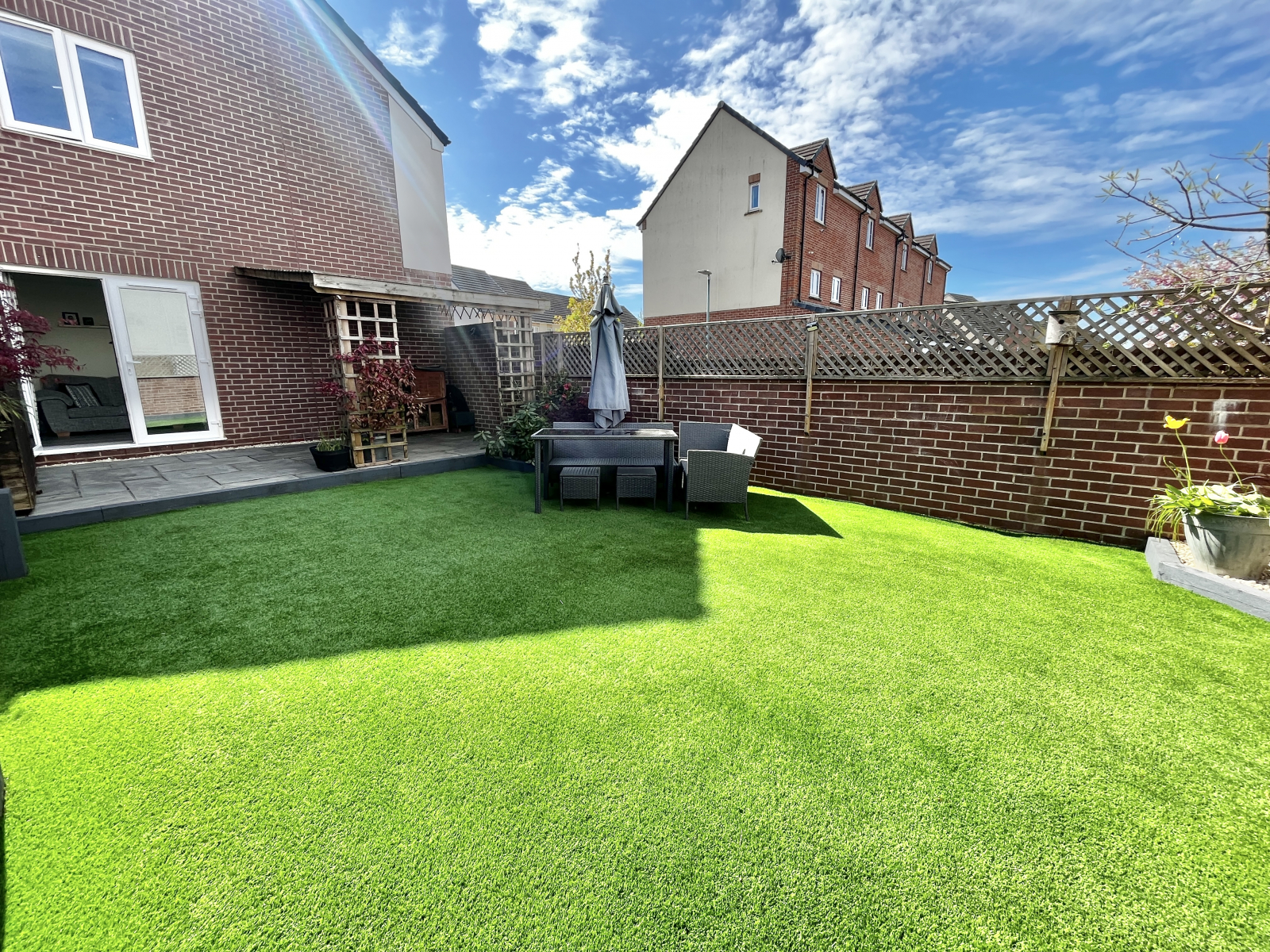 The rear garden is absolutely deautiful with walled and fenced secured boundaries. A stunning large patio area with pergola is perfect for enjoying outdoor living. Charming raised borders of flowering shrubs and plants and a large area laid to artificial lawn for easy maintenance. The rear gate gives access to the driveway and garage.