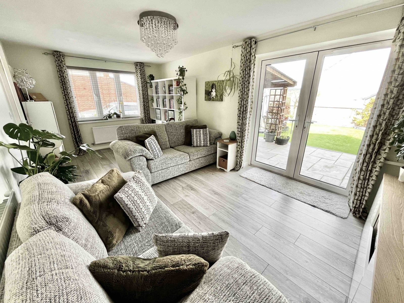 UPVC double-glazed window to front elevation and UPVC double-glazed patio doors to side elevation giving access to the garden. Wood effect laminate flooring with power points and TV point. Central lighting and radiator.