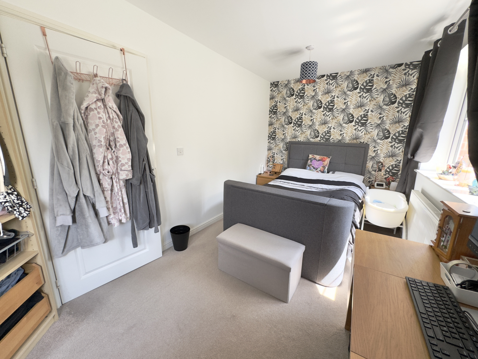 Bedroom Three UPVC double-glazed window to rear elevation with garden outlook. Carpeted with range of power points. Radiator and central lighting.