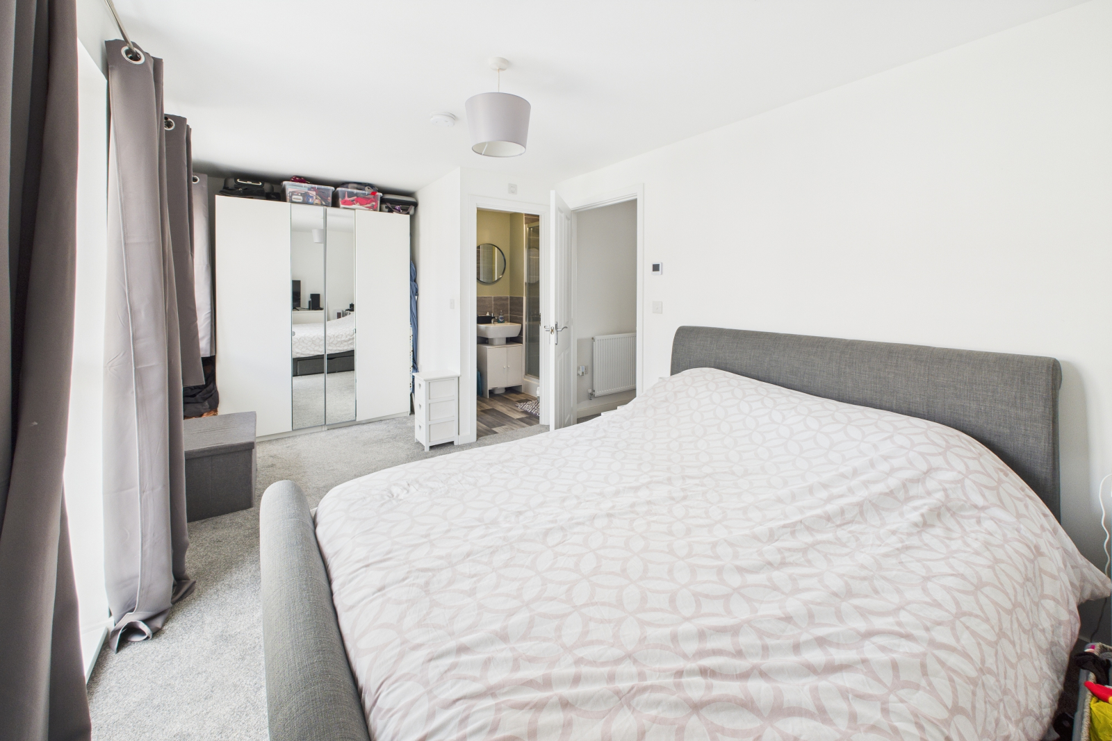 The impressive master bedroom is bathed in natural light from three UPVC double-glazed windows at the front of the property. Carpeted throughout, this room offers ample space for wardrobes and additional furniture. It also features pendant lighting, a radiator, and a variety of power points.