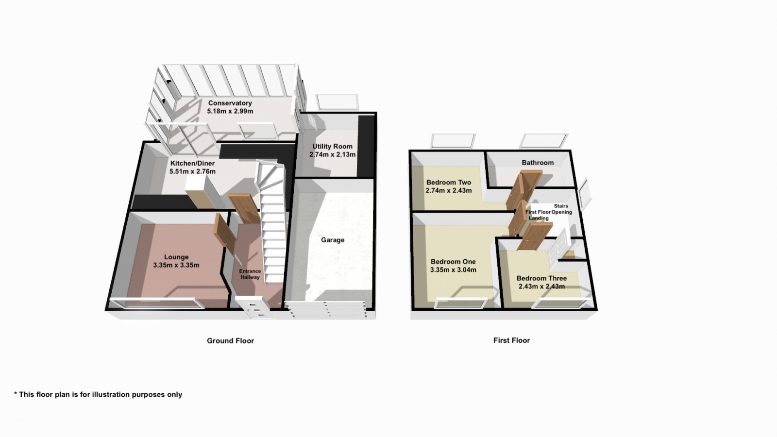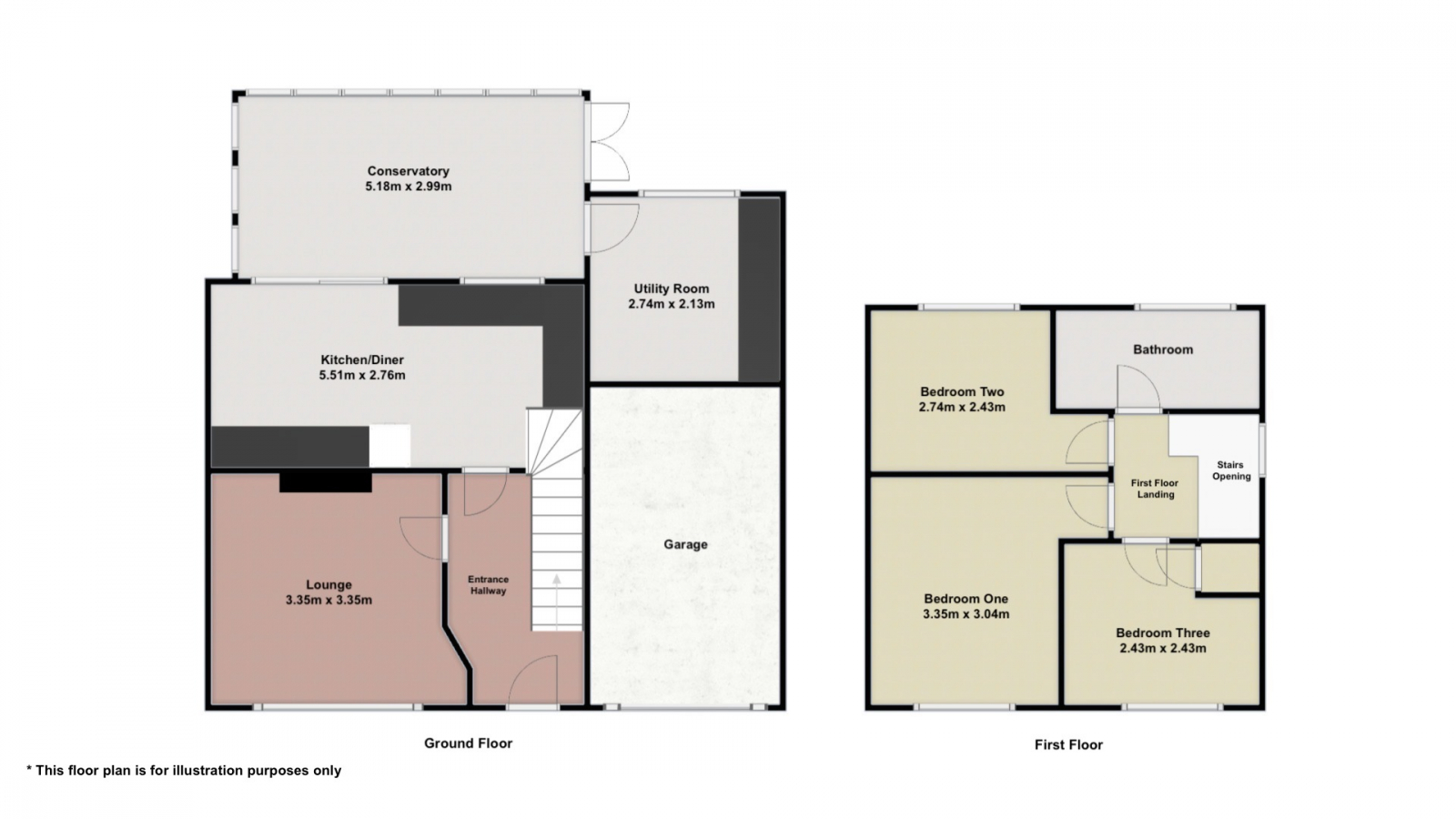 Bedroom Two 2.74m x 2.43mUPVC double-glazed window to rear elevation with pleasant garden outlook. Carpeted with central pendant lighting. Radiator and power points.