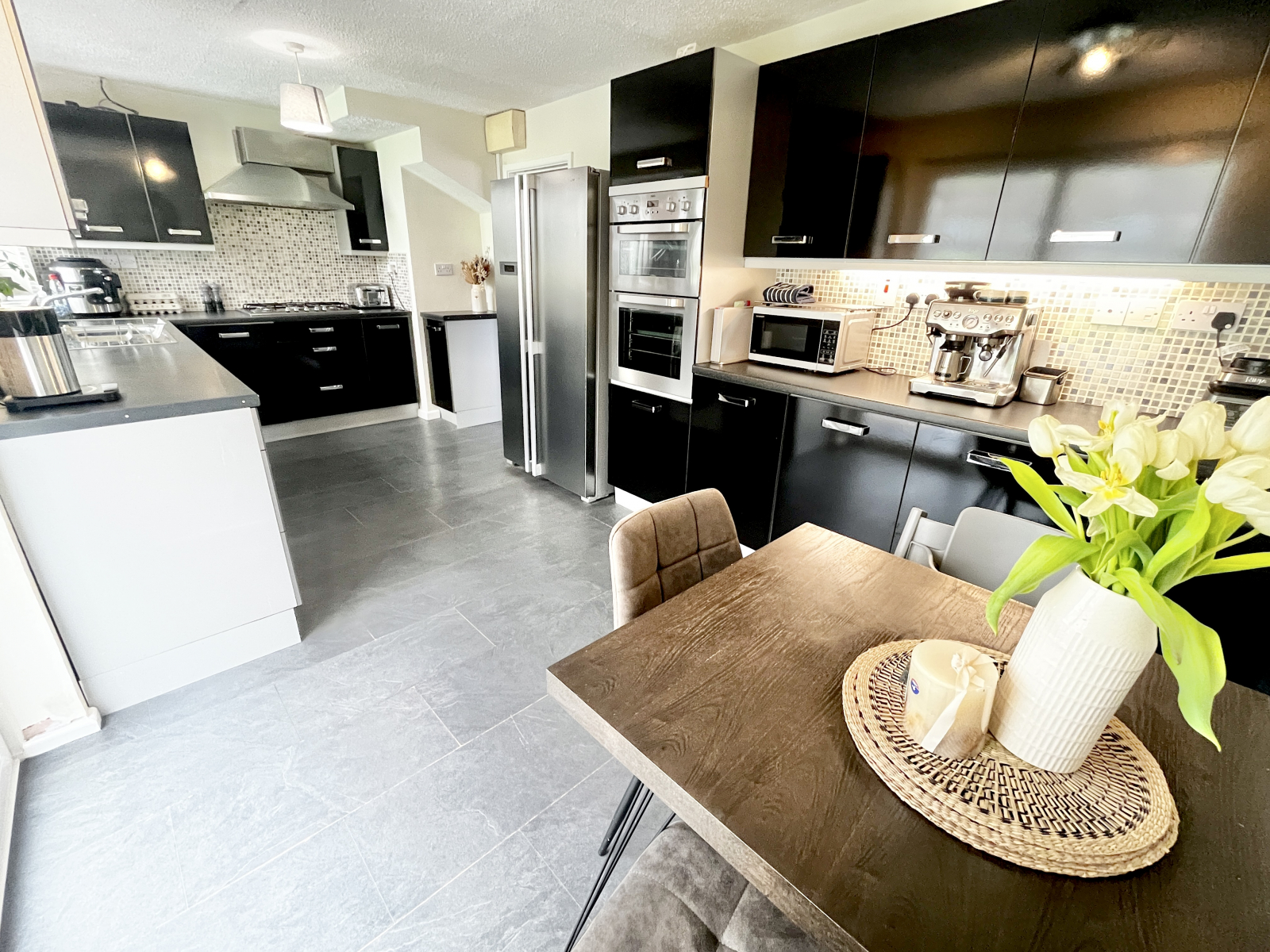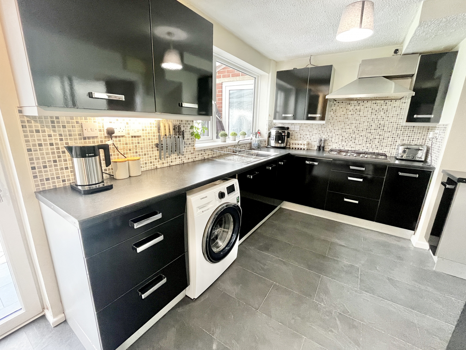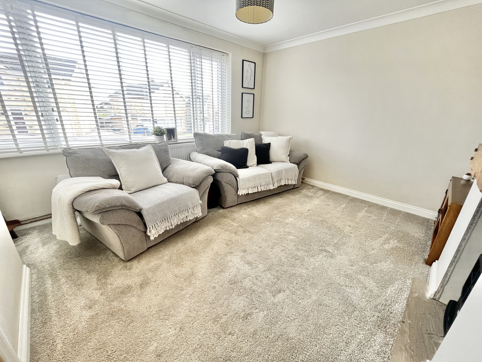 Lounge 3.35m x 3.35mExceptionally large UPVC double-glazed window to front elevation bringing in an abundance of natural light. The charming and cosy lounge has a feature fireplace with oak mantle and space for electric wood burner. Carpeted with power points and TV point. Central pendant lighting and radiator. Agents note- New owners could install a woodburner as the property has a chimney.