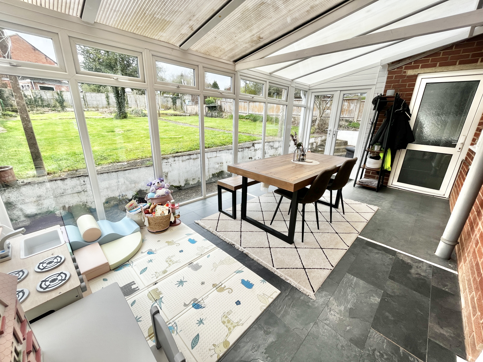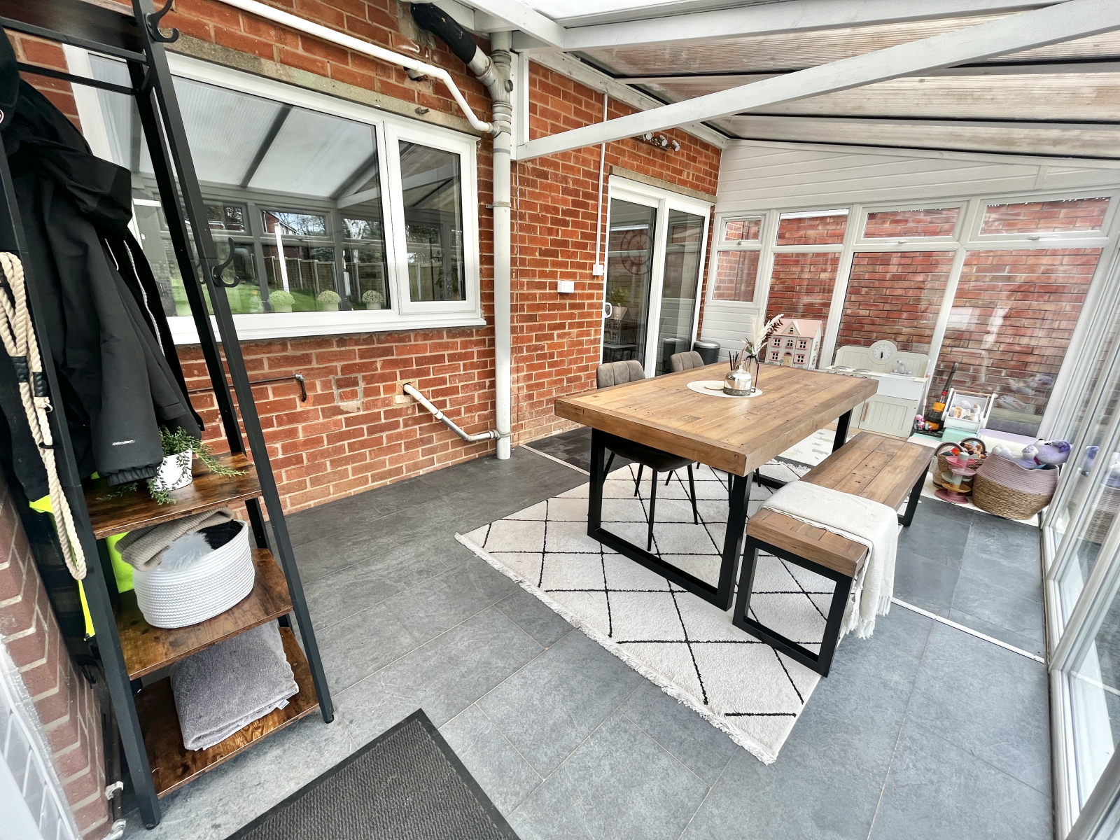 Conservatory 5.18m x 2.99mSpacious and bright with UPVC double- glazed windows to side and rear aspect and patio doors giving access to the garden. Tile effect flooring throughout. Lighting and power point. Door to;