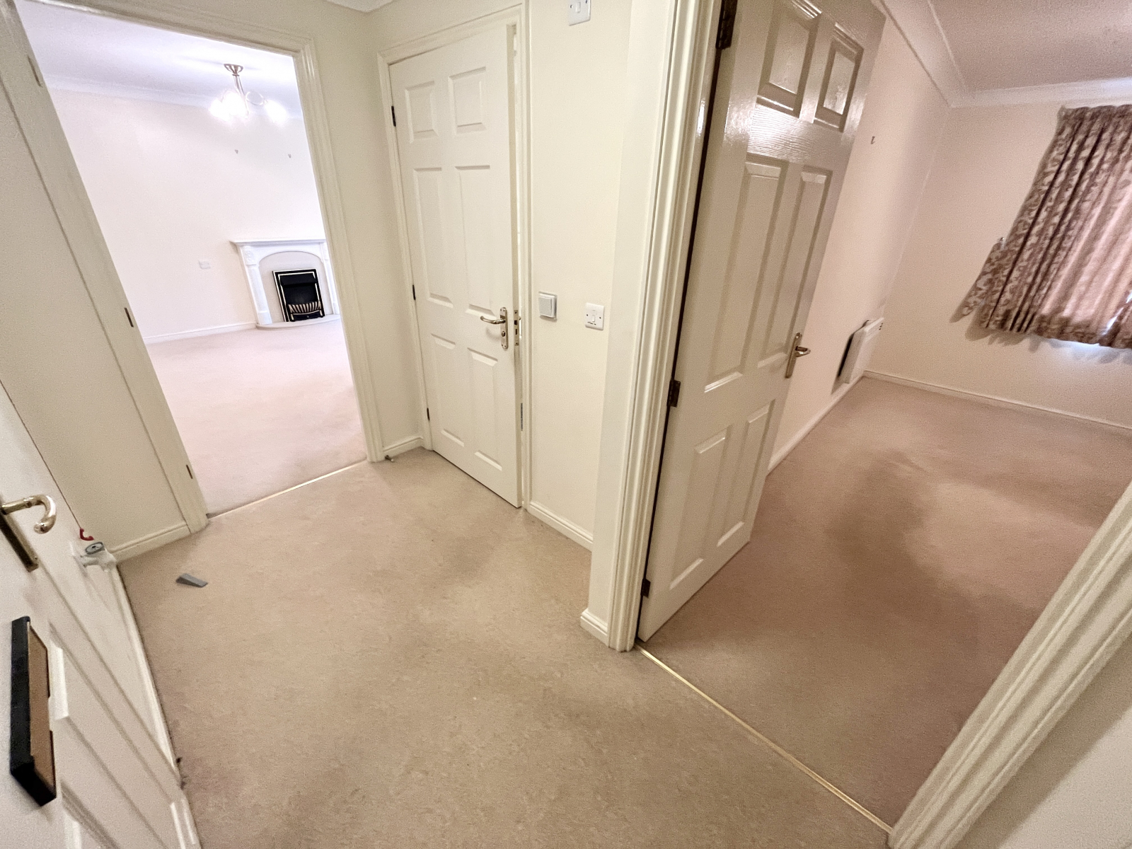 Spacious with central lighting and coved ceiling. Doors leading off. Large storage cupboard with shelving and carpeted flooring.