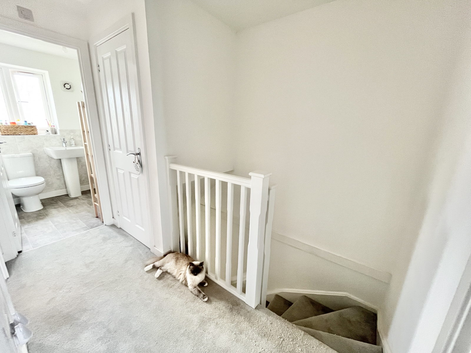 First Floor LandingCarpeted galleried style landing with loft access and doors leading off. Central lighting and power points. Airing cupboard with heating controls and storage space.