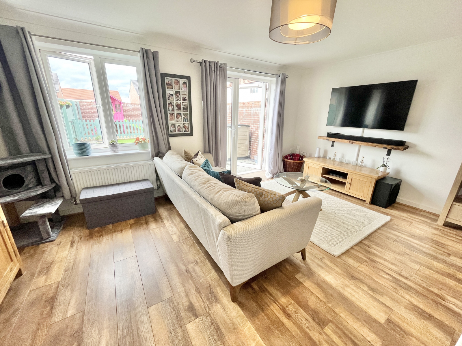 Lounge UPVC double-glazed patio doors give access to the garden and UPVC double-glazed window to the rear with garden outlook. Laminate wood effect flooring throughout. Central lighting, radiator, TV point, and power points.
