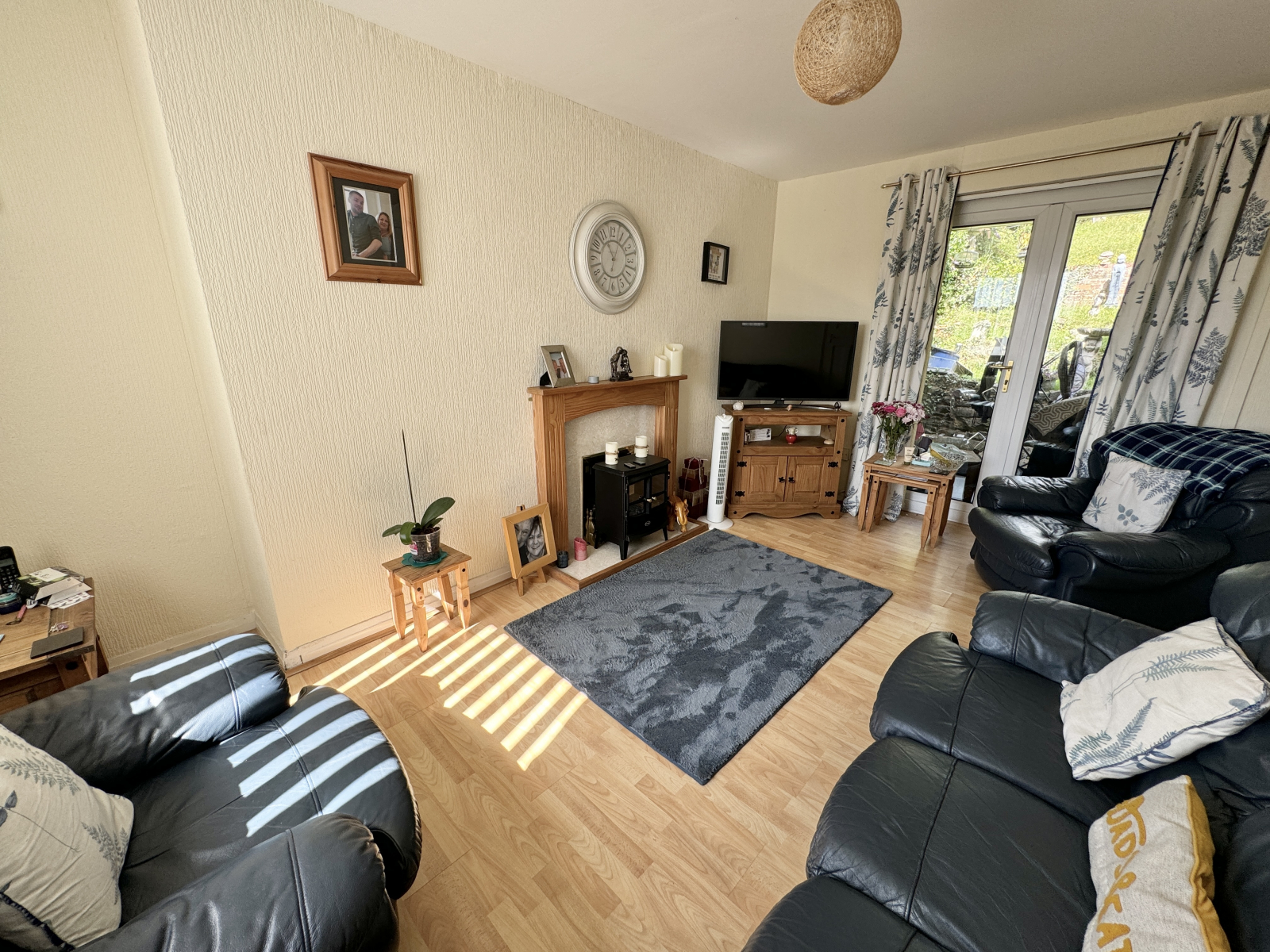 UPVC double-glazed window to the front aspect with radiator under and wood effect flooring. Feature fireplace with wooden surround. Skirting boards, power points and TV point. French doors leading out to the rear garden.
