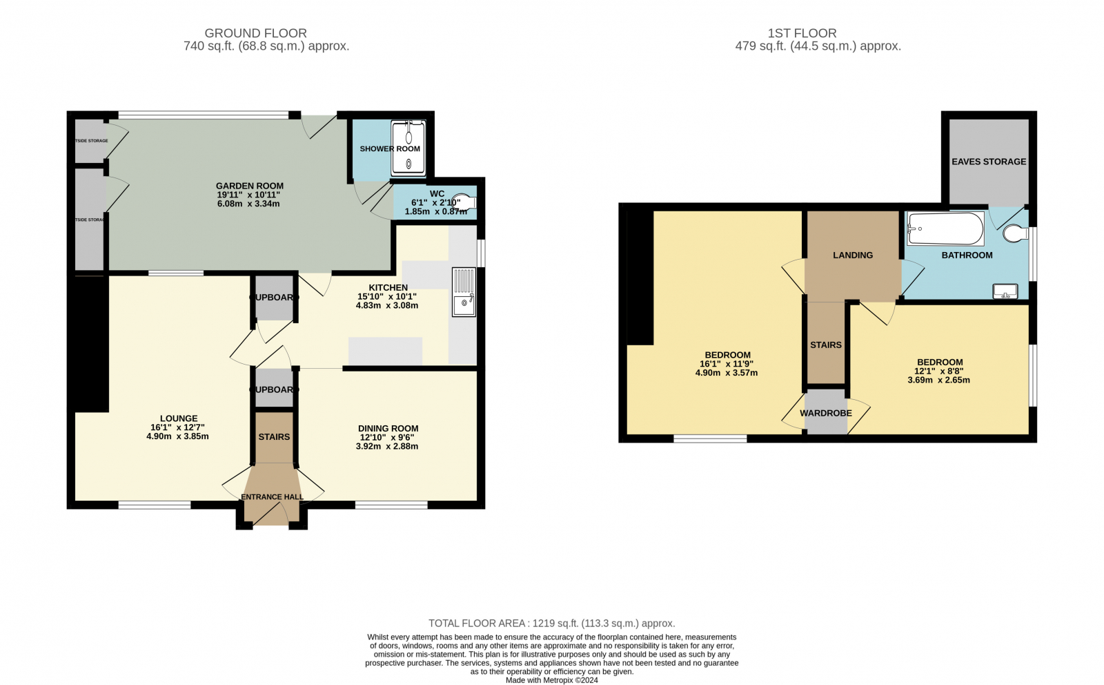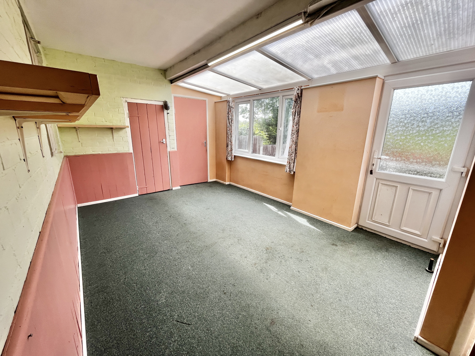 Sun Room UPVC double-glazed window to rear elevation and half-glazed door to garden. Carpeted with strip lighting and power point. Door to two separate storage cupboards with shelving.