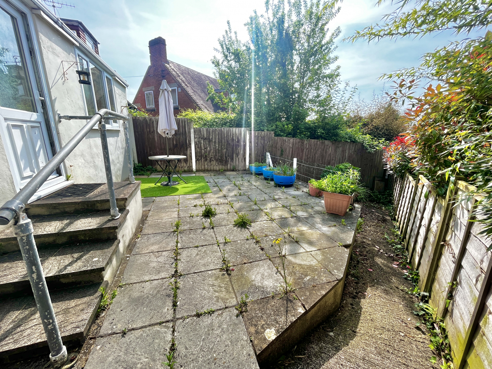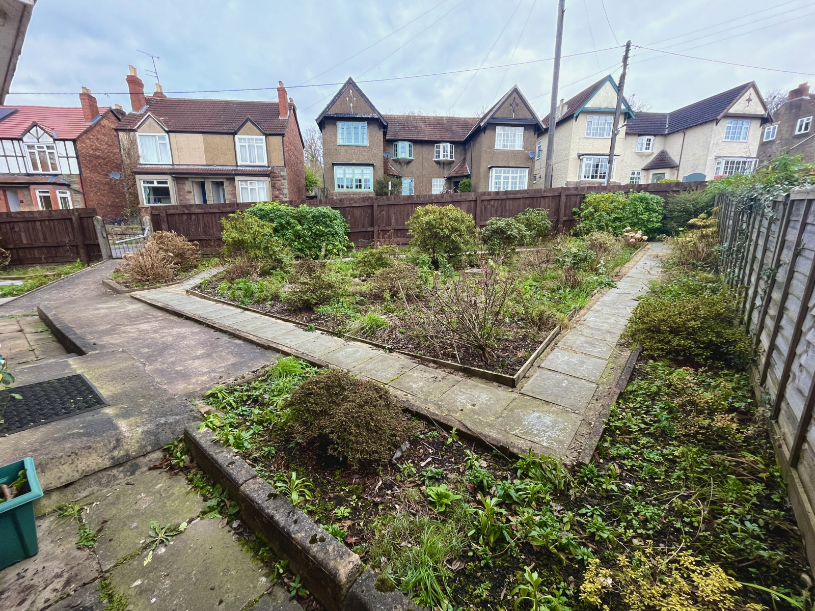 To the front, the spacious garden has an area laid to artificial lawn which could be made into a two-car driveway with appropriate permissions. The rest of the garden is enclosed by fenced boundaries with paved pathways and flowering borders of shrubs and plants.