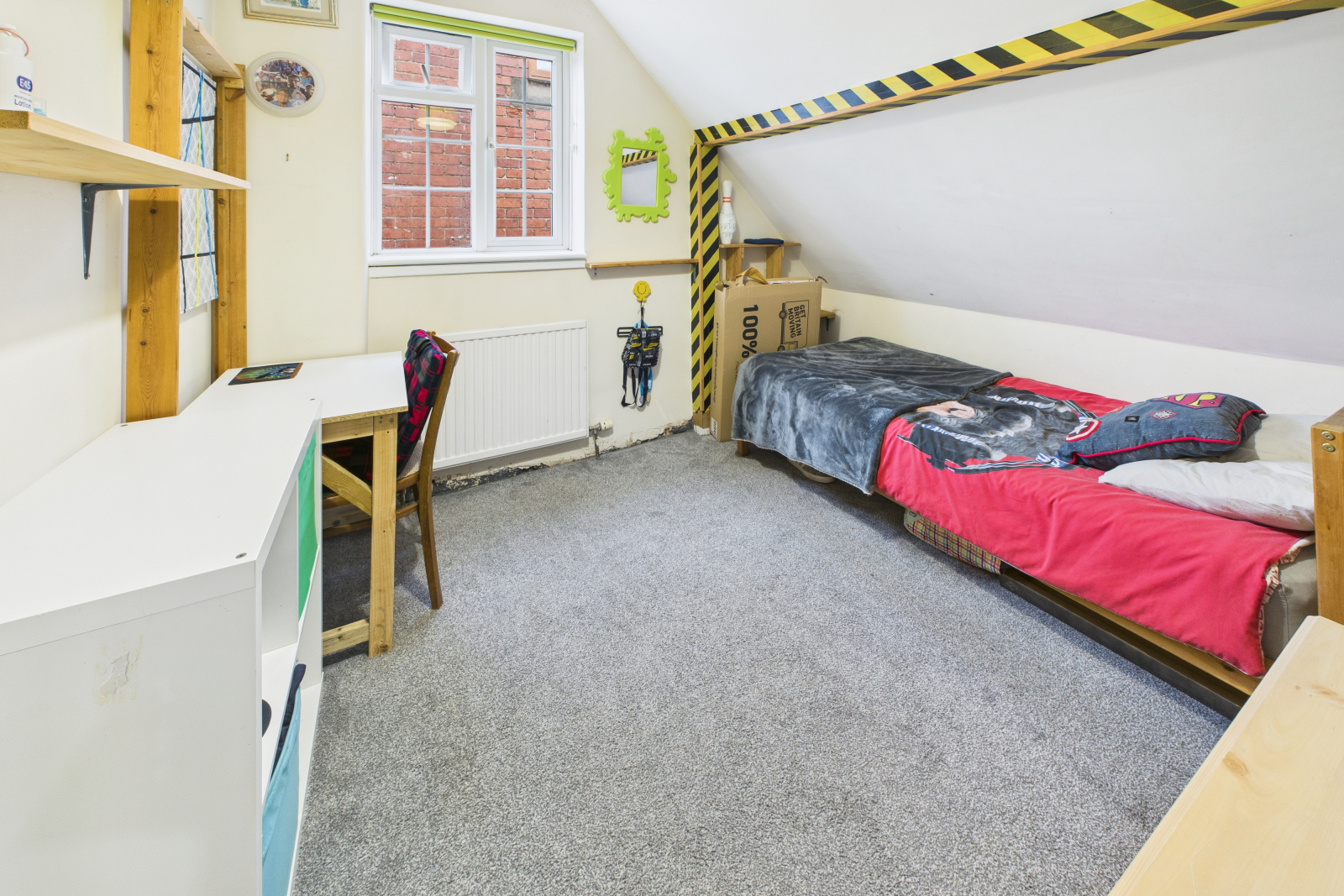 With a UPVC double-glazed window to the side aspect, this third bedroom includes carpeted flooring, radiator, central lighting, and power points — ideal as a child’s room, guest bedroom, or home office.