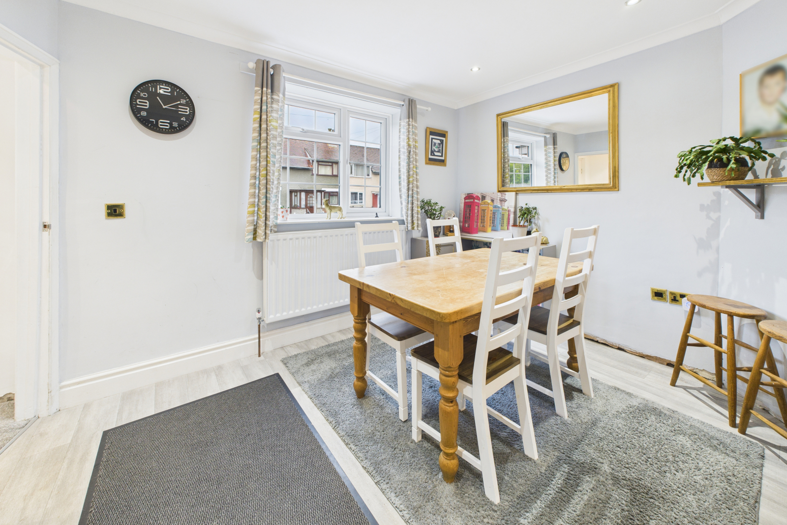 A cupboard houses the Worcester gas central heating boiler, and there’s a handy understairs storage cupboard/pantry. Ample room for a large dining table completes this sociable and practical space.