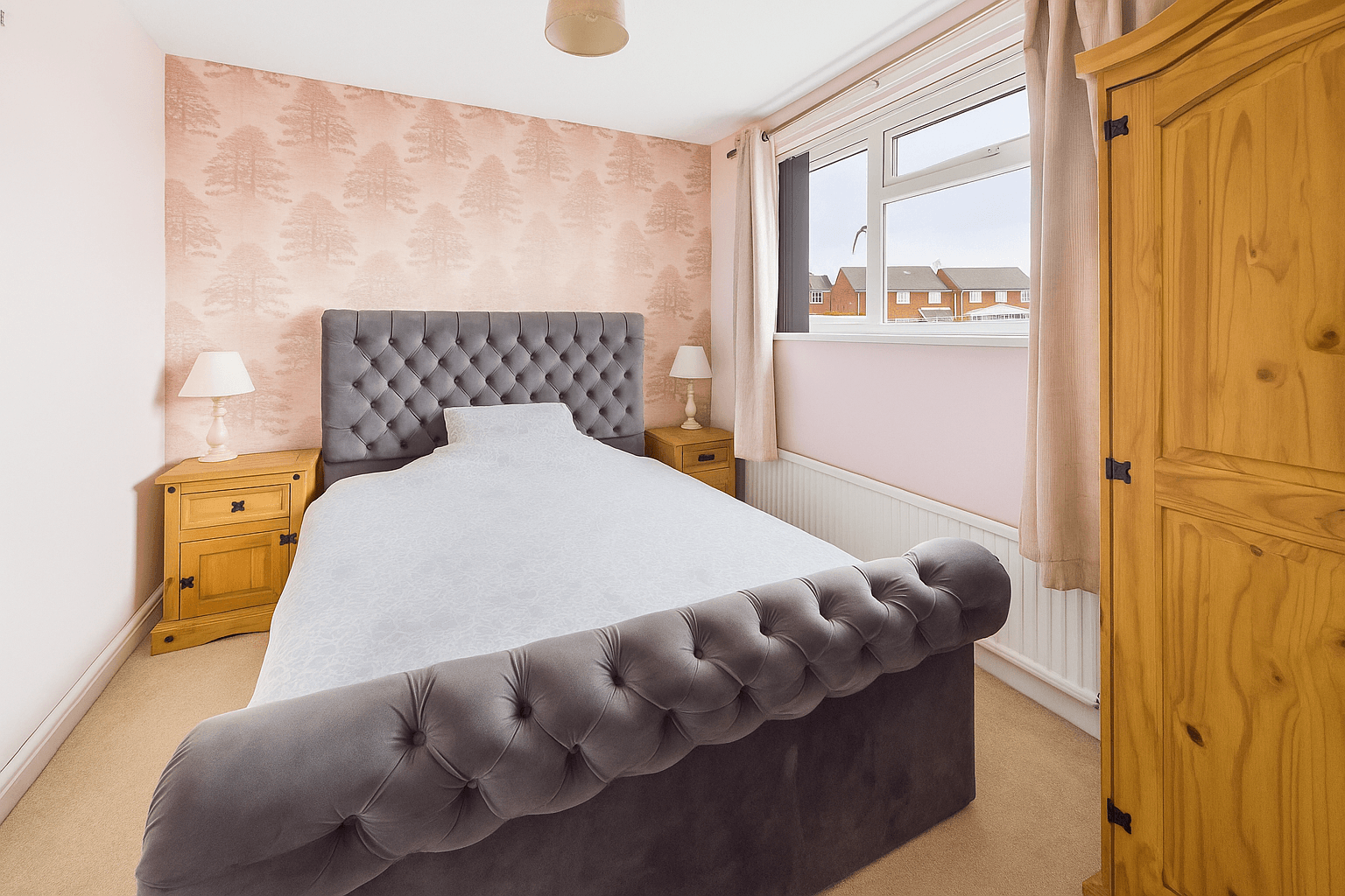 uPVC double glazed window to the rear aspect with wall-mounted radiator beneath. Carpeted flooring, central pendant lighting, and power points.