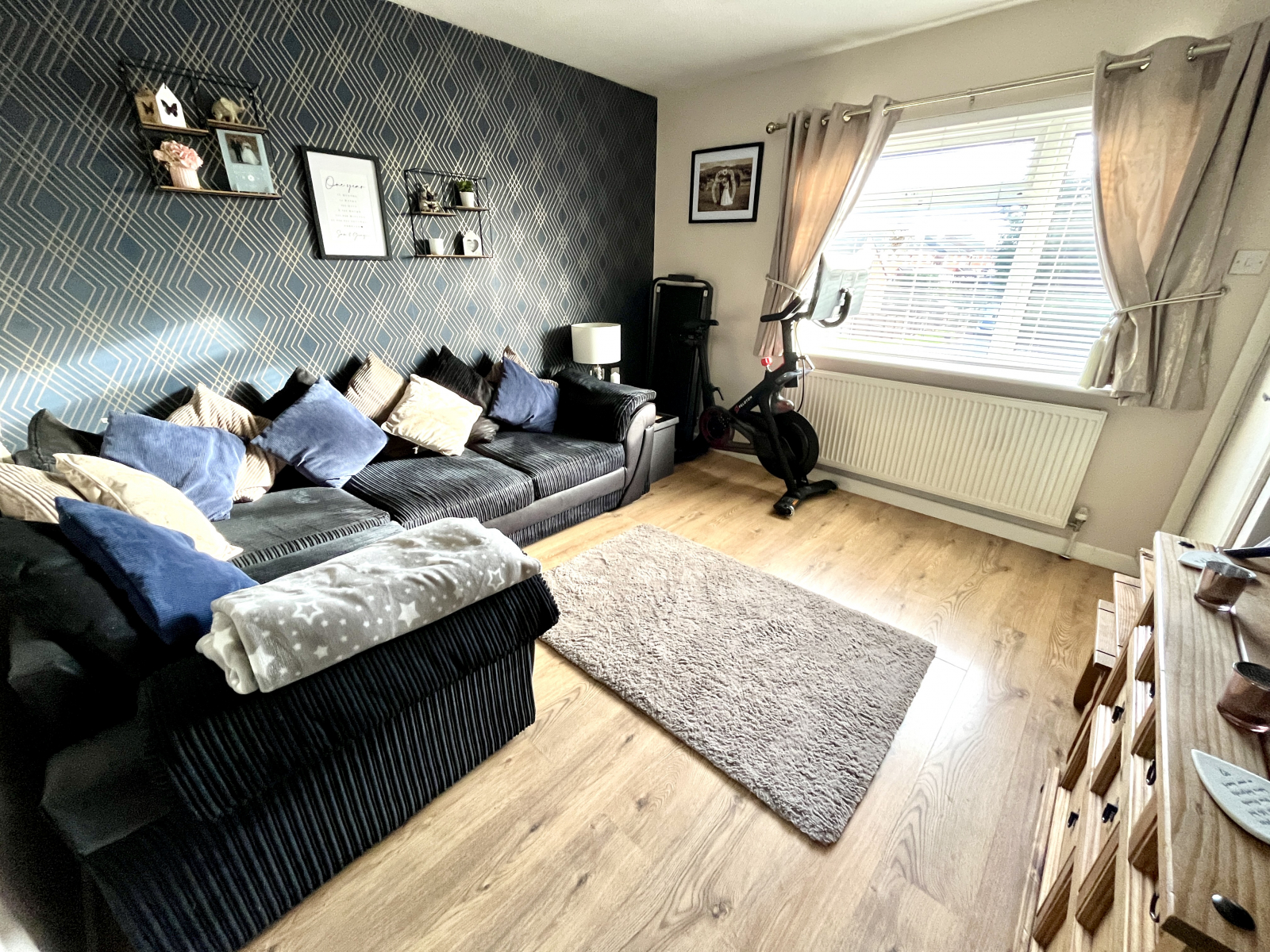 Large UPVC double-glazed window to front elevation with radiator under. Laminate oak effect flooring throughout and central lighting. Bright and airy with power points and TV point. Fitted under stairs storage cupboard. Open into;
