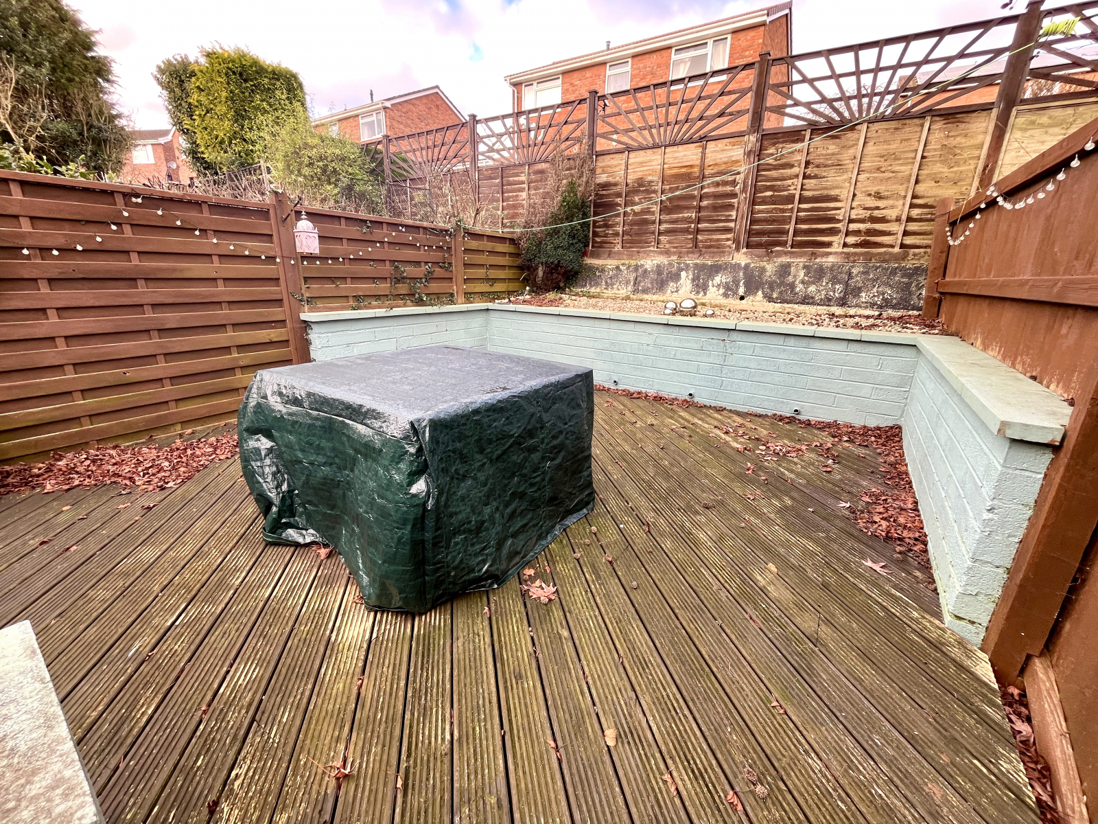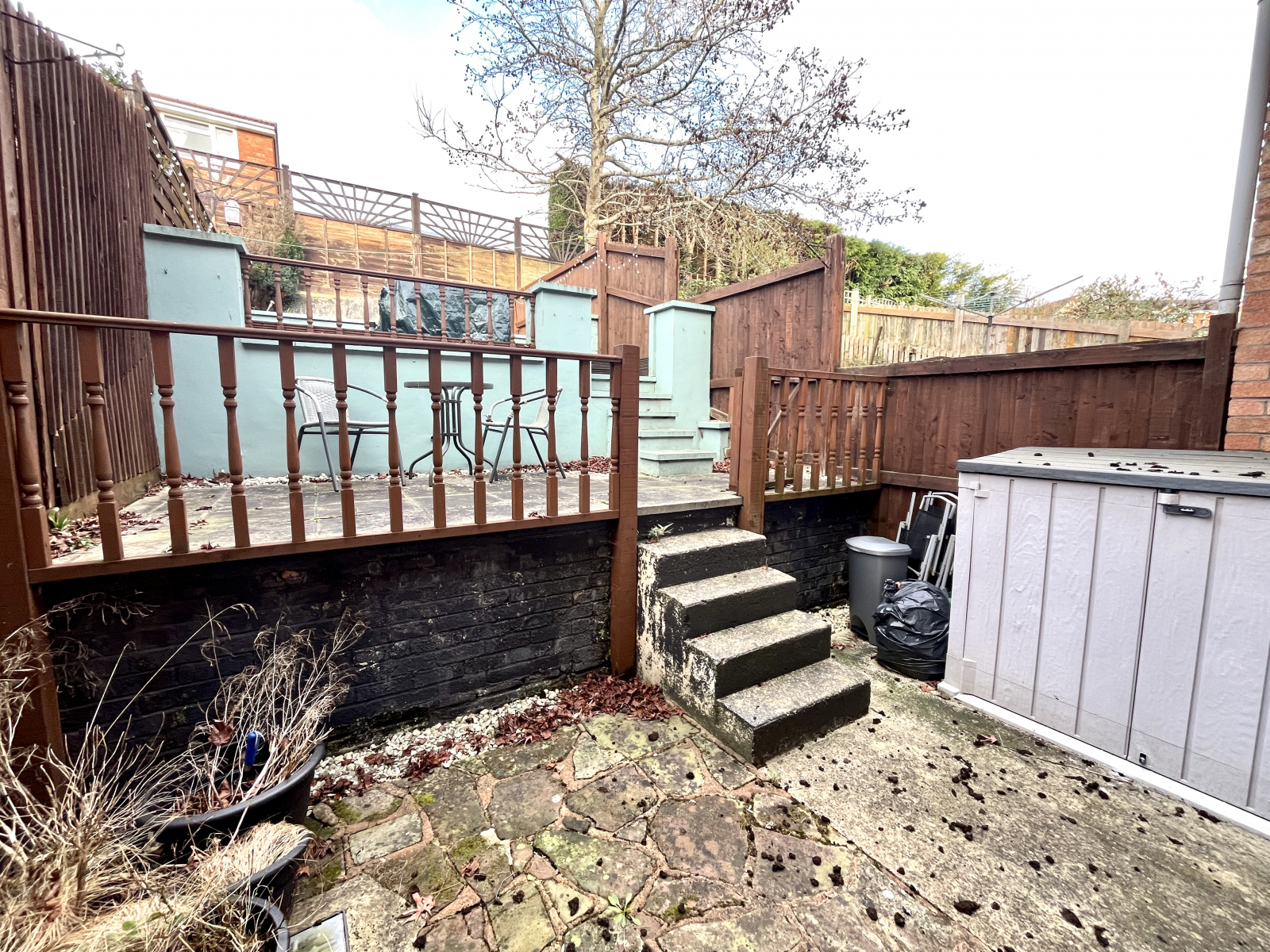 The rear garden is easily maintained and has fenced and walled boundaries. Beautifully landscaped with terraced levels to enjoy outdoor living. Benefiting from two paved terrace areas and a large decking area with raised flower borders.