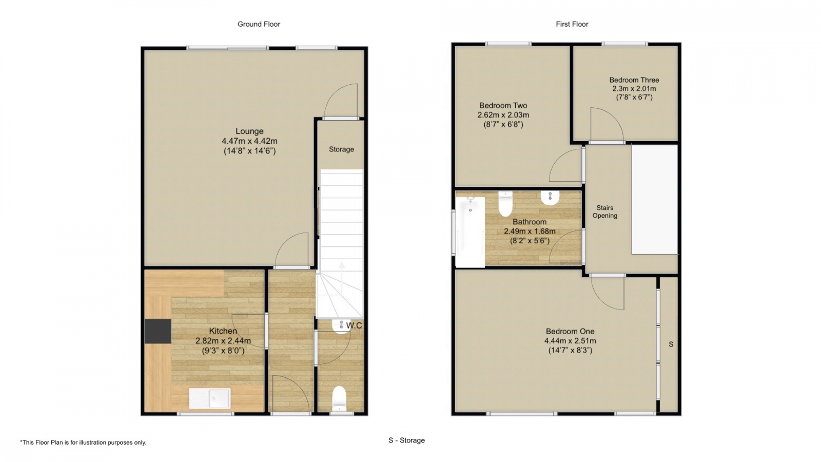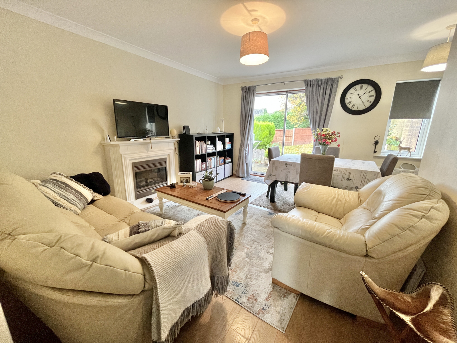 Lounge/ Diner Sliding patio door to rear garden and UPVC double-glazed window to rear. Bright and spacious with wood effect flooring and Feature electric fireplace. Central lighting and power points. Two radiators and door to understairs storage cupboard.
