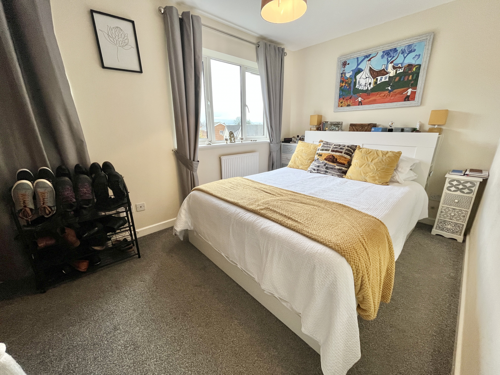 Bedroom One Two UPVC double-glazed windows to front elevation with pleasant outlook. Carpeted with a radiator and central lighting. Large fitted wardrobes with an abundance of shelving, drawers, and hanging rails. Power points and central lighting.