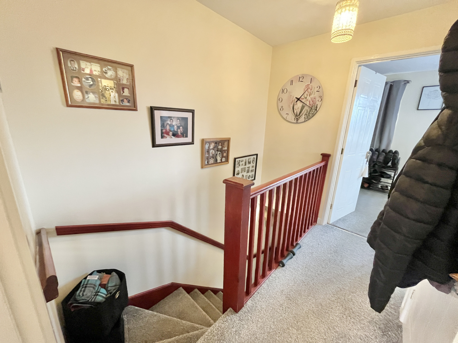 First Floor Landing Gallery style with doors leading off and loft access. Door to airing cupboard having shelving and storage space.