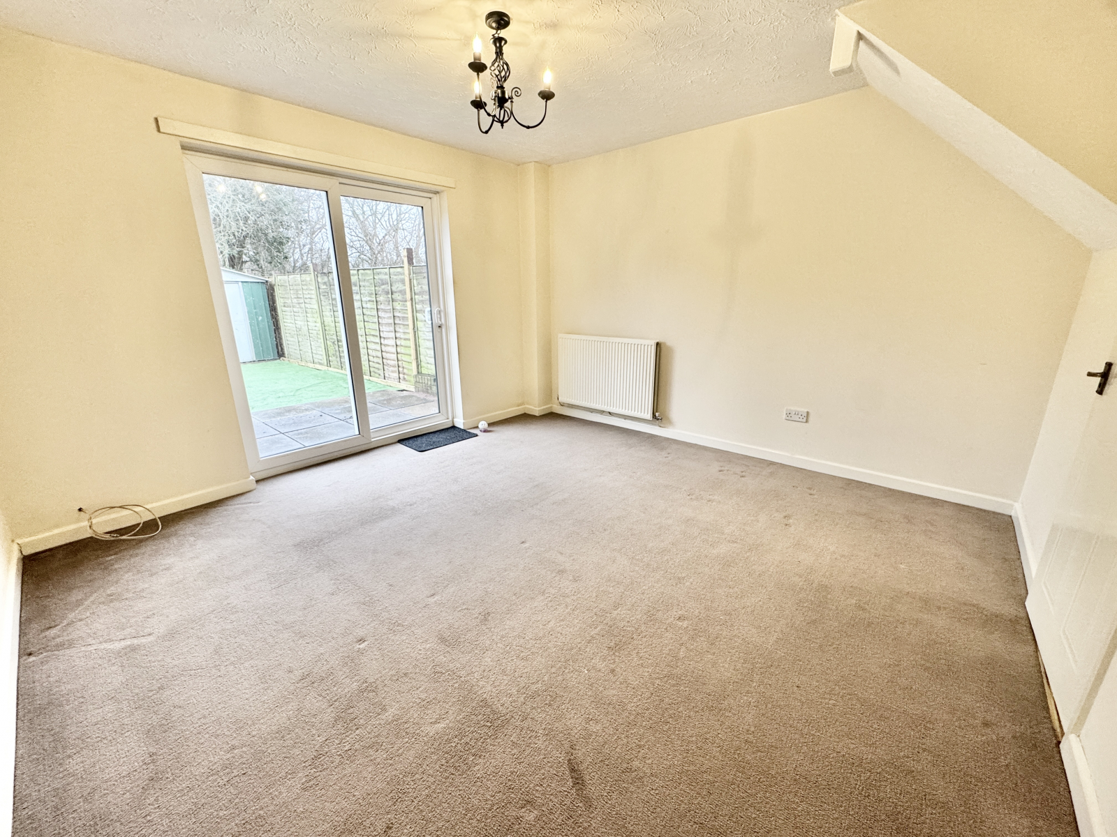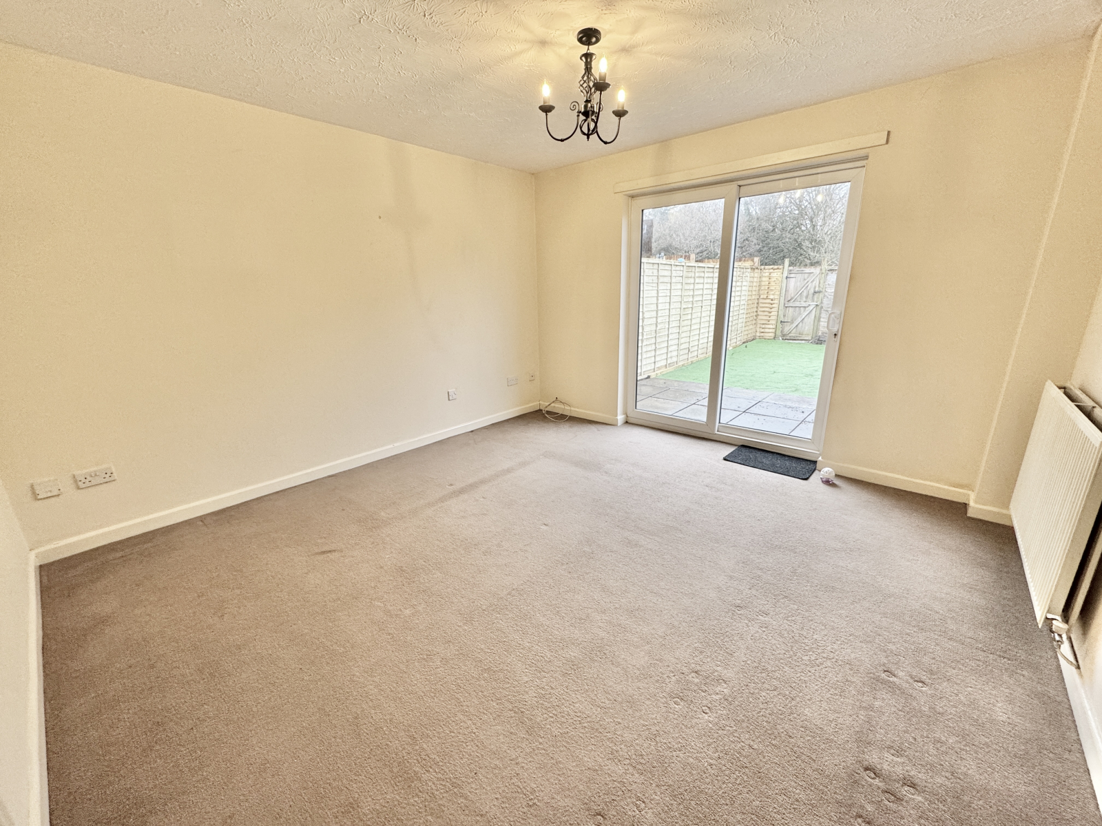 Carpet flooring, radiator and power points, BT wifi point, TV aerial point to side, UPVC double glazed sliding patio door leading to the garden.