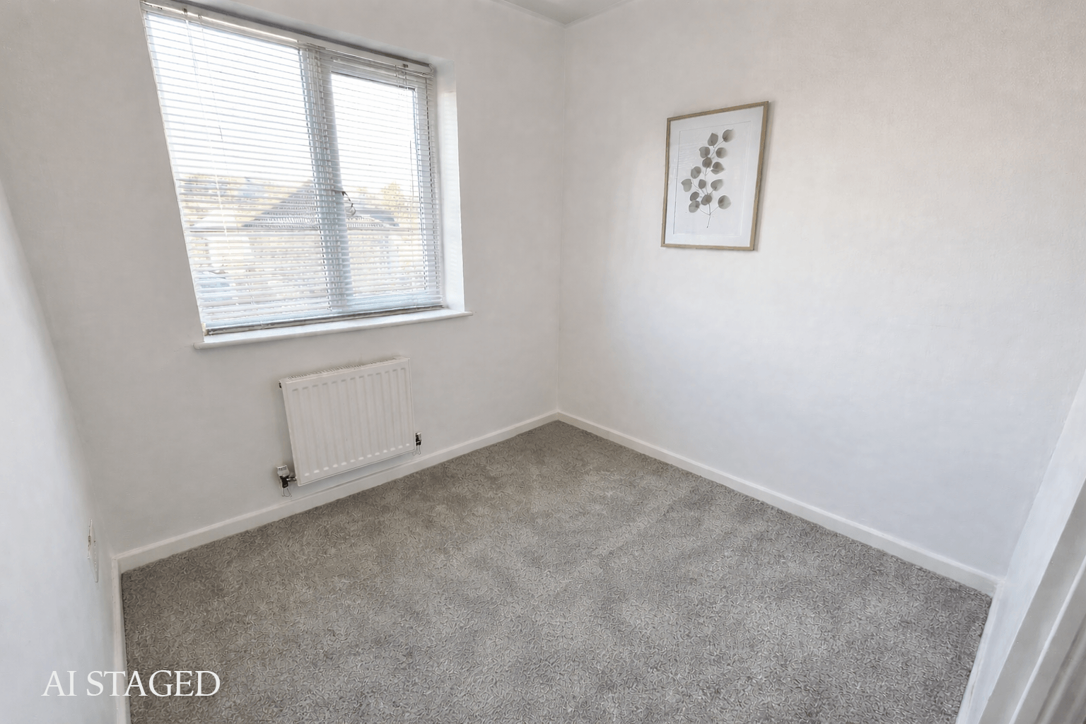 UPVC double-glazed window to rear elevation with garden views. Recently laid high quality plush carpet, with central lighting, radiator, and power points.