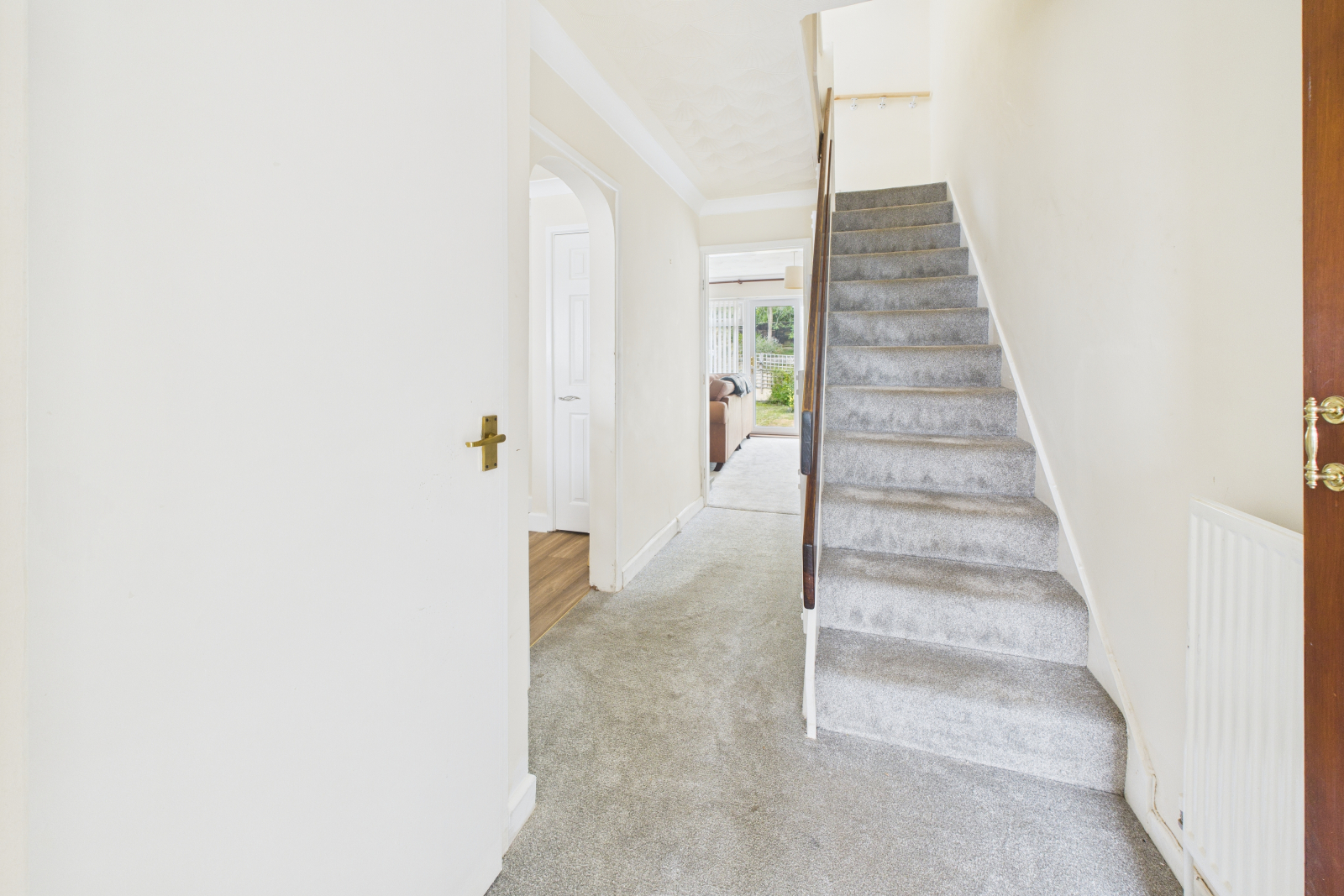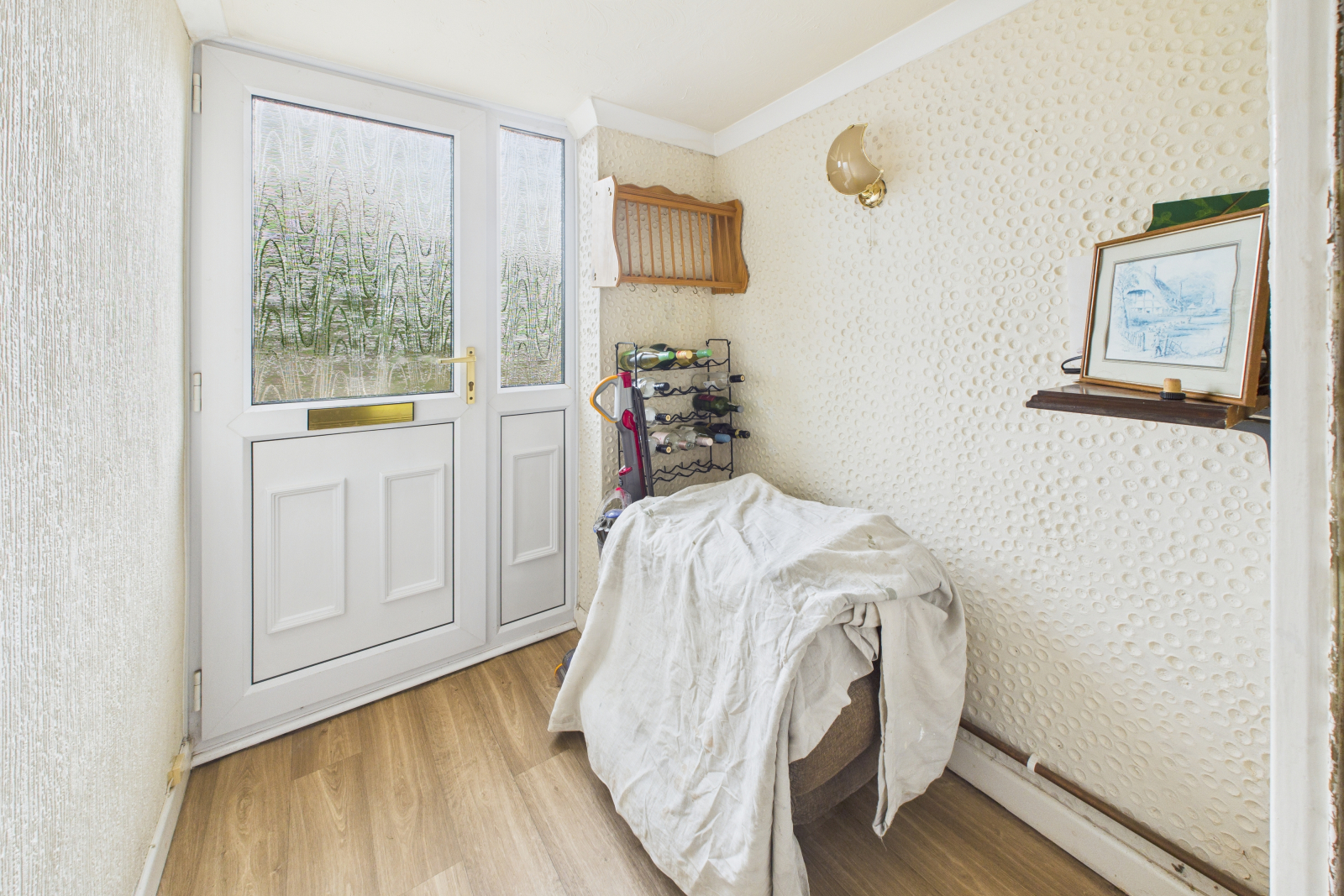 Property is entered via the front door into an entrance area featuring wood-effect flooring.