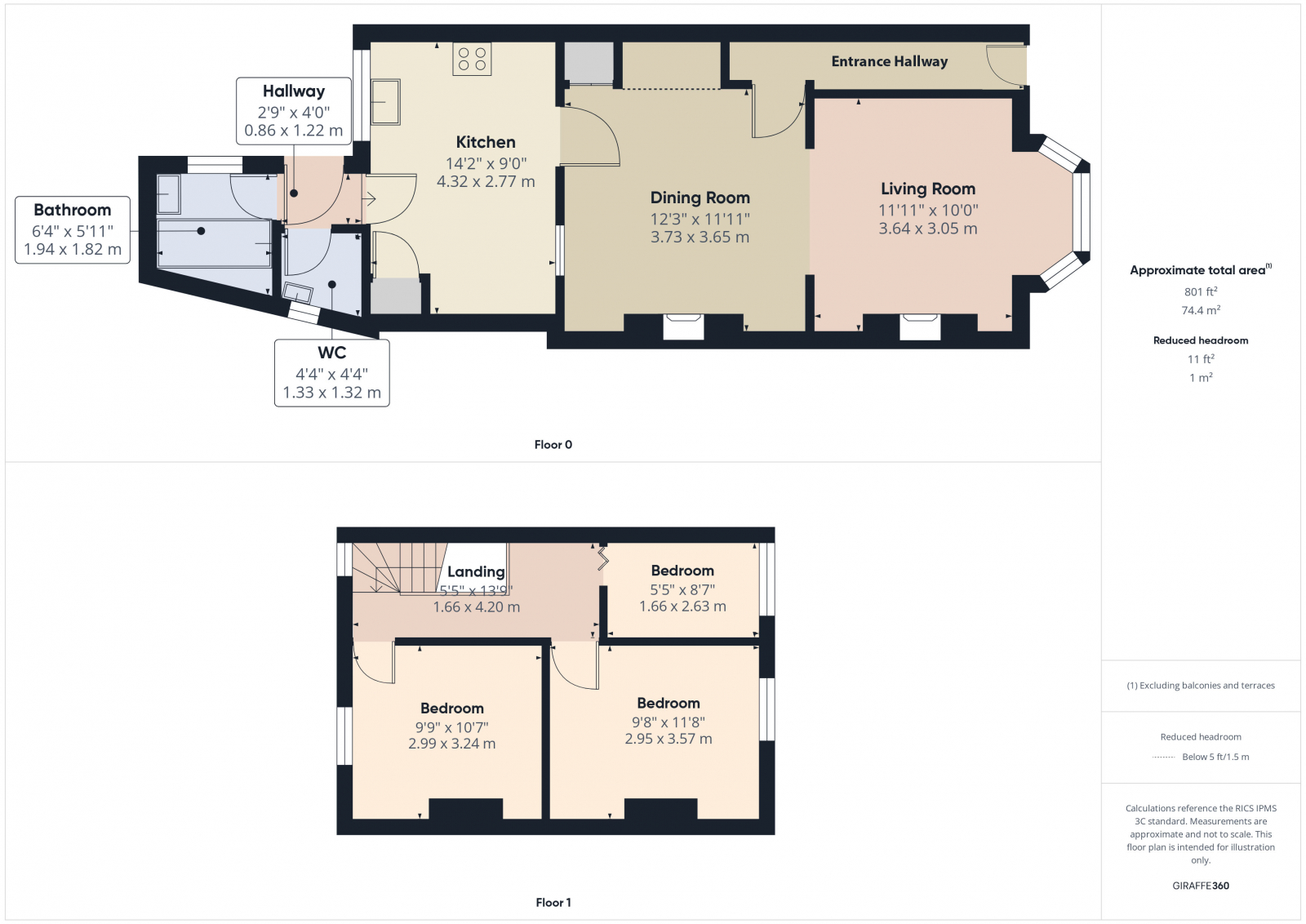 Hallway - 2’9 x 4’0 (0.86m x 1.22m)