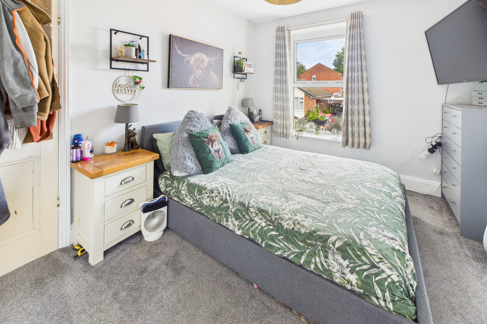 Large UPVC double glazed window to front aspect. Carpeted flooring and wall mounted radiator. Skirting boards and power points.