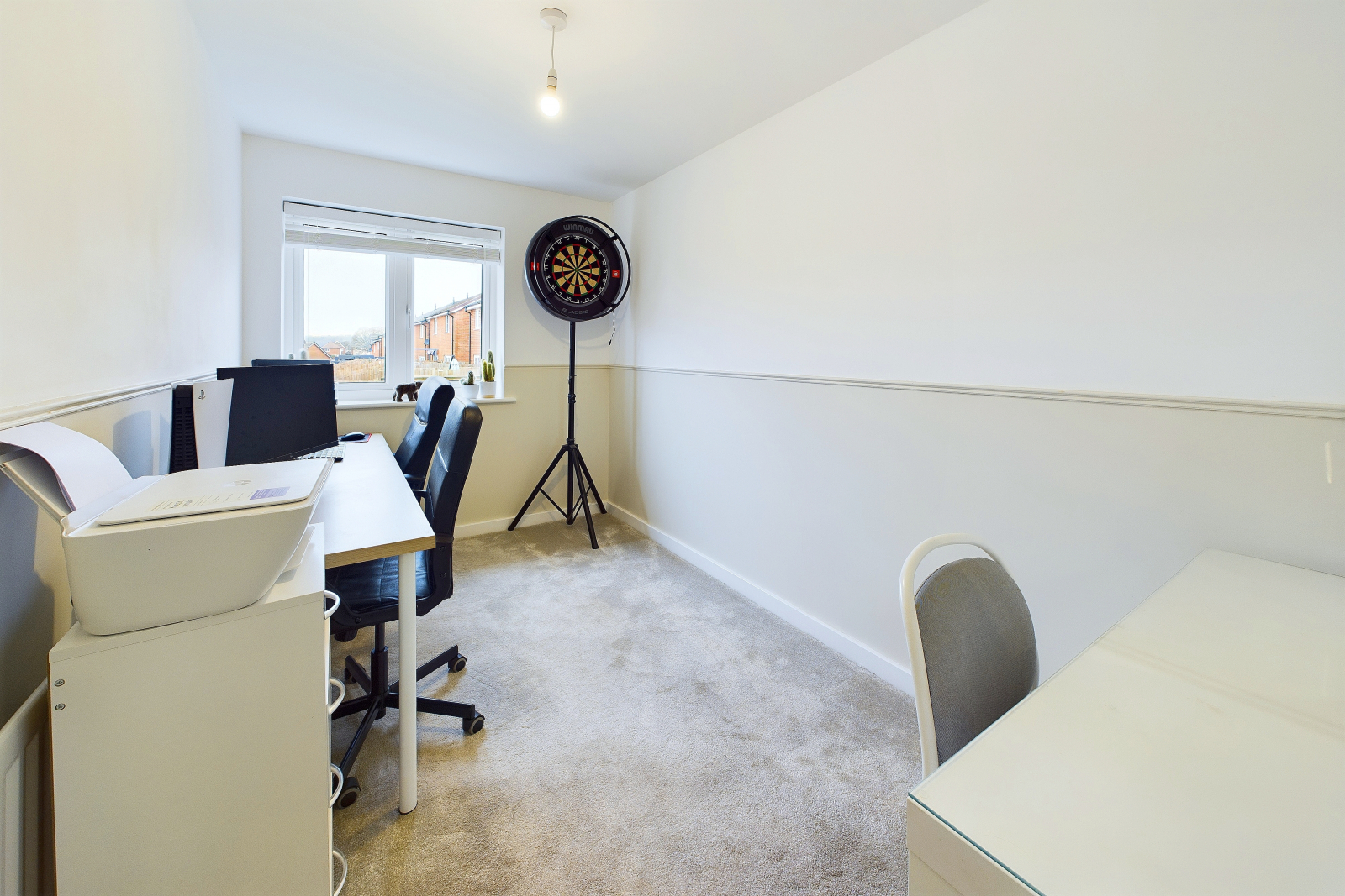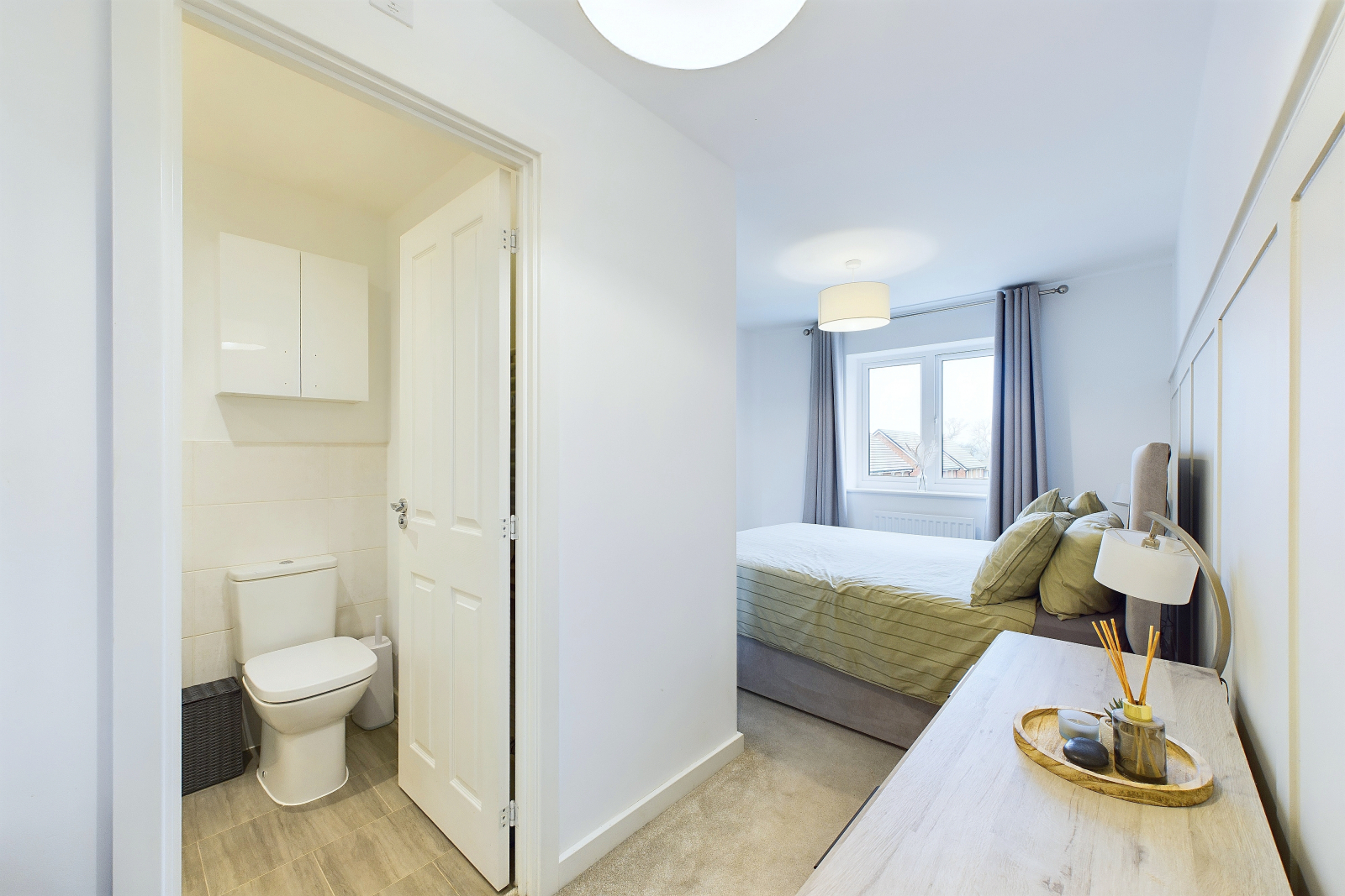 Entrance A charming, upgraded slate-style pathway leads to the entrance door, sheltered by a stylish storm porch. Reception Hallway A bright and beautifully decorated space, featuring elegant panelling and wood-effect flooring throughout. The modern composite entrance door opens into a welcoming hallway with an open, carpeted stairwell leading to the first floor. Central lighting, a radiator, and ample power points complement this area, along with a generously sized understairs storage cupboard. Downstairs Cloakroom A convenient cloakroom with an obscured UPVC double-glazed window to the front aspect. Features include a low-level push-button W.C., a pedestal wash hand basin with a mixer tap and tiled splashback, wood-effect flooring, a radiator, and sleek spot lighting. Kitchen / Diner A stunning, bright, and spacious kitchen/dining area with a UPVC double-glazed window to the front elevation. The space is enhanced by an excellent range of high-gloss white base and eye-level units, complemented by stylish rolled-top work surfaces and matching upstands. A stainless steel sink and drainer with a mixer tap sit beneath the window, while integrated appliances include a fridge/freezer, dishwasher, and an electric oven with a four-ring gas hob. A stainless steel splashback and chimney-style extractor hood add a contemporary touch. Spot lighting and feature lighting create a warm ambiance, while ample power points, a cupboard housing the gas central heating boiler, and wood-effect flooring complete the space. There's also plenty of room for a dining table, making it the perfect area for entertaining. Lounge A truly gorgeous living space, flooded with natural light through UPVC double-glazed patio doors that open onto the garden, alongside additional rear-facing UPVC double-glazed windows. The upgraded oak-effect flooring enhances the room’s elegance, making it an ideal space for families. Central lighting, a radiator, and a range of power points provide functionality, while a large understairs cupboard with power supply offers additional storage. First Floor Landing A spacious, gallery-style landing with central lighting, loft access, and a fully carpeted finish. Power points and doors lead to all bedrooms and the family bathroom. Master Bedroom A beautifully upgraded master suite with a UPVC double-glazed patio window to the rear, offering elevated views. This stylish space features modern panelled detailing, plush carpeted flooring, and a range of power points. A pendant ceiling light adds warmth, while a mirrored double wardrobe provides generous shelving and hanging space. En-Suite Shower Room A sleek and modern en-suite, featuring a large step-in double shower with a glazed sliding door and chrome-effect shower fittings. The space includes a low-level push-button W.C., a pedestal wash hand basin with a mixer tap, tiled flooring, and stylish tiled splashbacks. A white heated towel rail, wall-mounted vanity unit, shaving point, spot lighting, and an extractor fan complete this elegant bathroom. Bedroom Two A well-proportioned double bedroom with a UPVC double-glazed window to the front aspect, offering picturesque countryside views. Fully carpeted with central lighting, a radiator, and a range of power points. An alcove provides an ideal space for storage or a wardrobe. Bedroom Three Currently utilised as a home office, this versatile room features a UPVC double-glazed window to the rear with an elevated outlook. Fully carpeted, with pendant central lighting, a radiator, and an excellent range of power points, this space is perfect as a bedroom, study, or creative workspace. Family Bathroom A modern and stylish bathroom, benefiting from an obscured UPVC double-glazed window to the front elevation. The suite includes a low-level push-button W.C., a pedestal wash hand basin with a mixer tap, and a panelled bath with a mixer tap and shower attachment. Additional features include tile-effect flooring, a white heated towel rail, tiled splashbacks, a shaving point, spot lighting, and an extractor fan.
