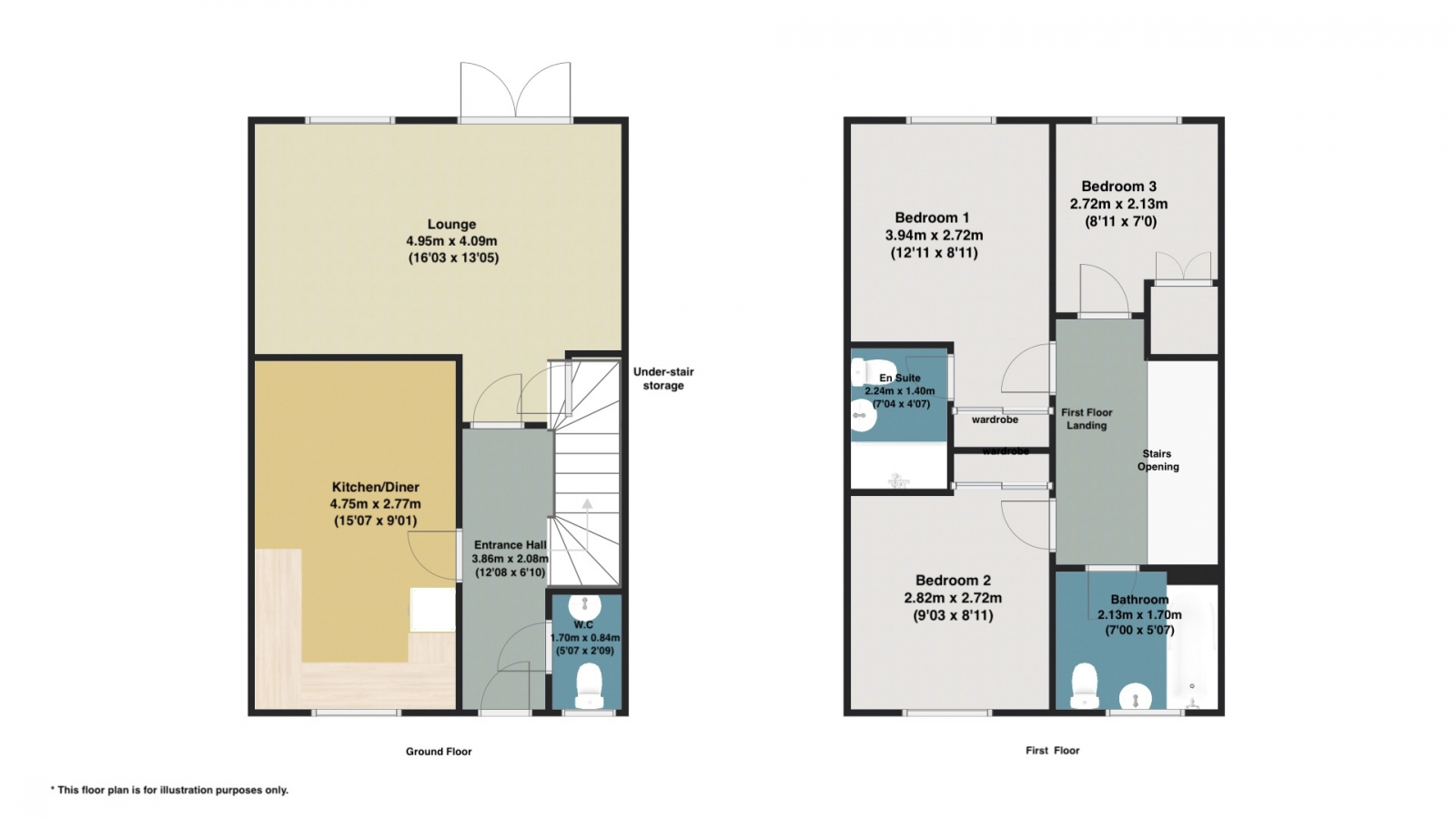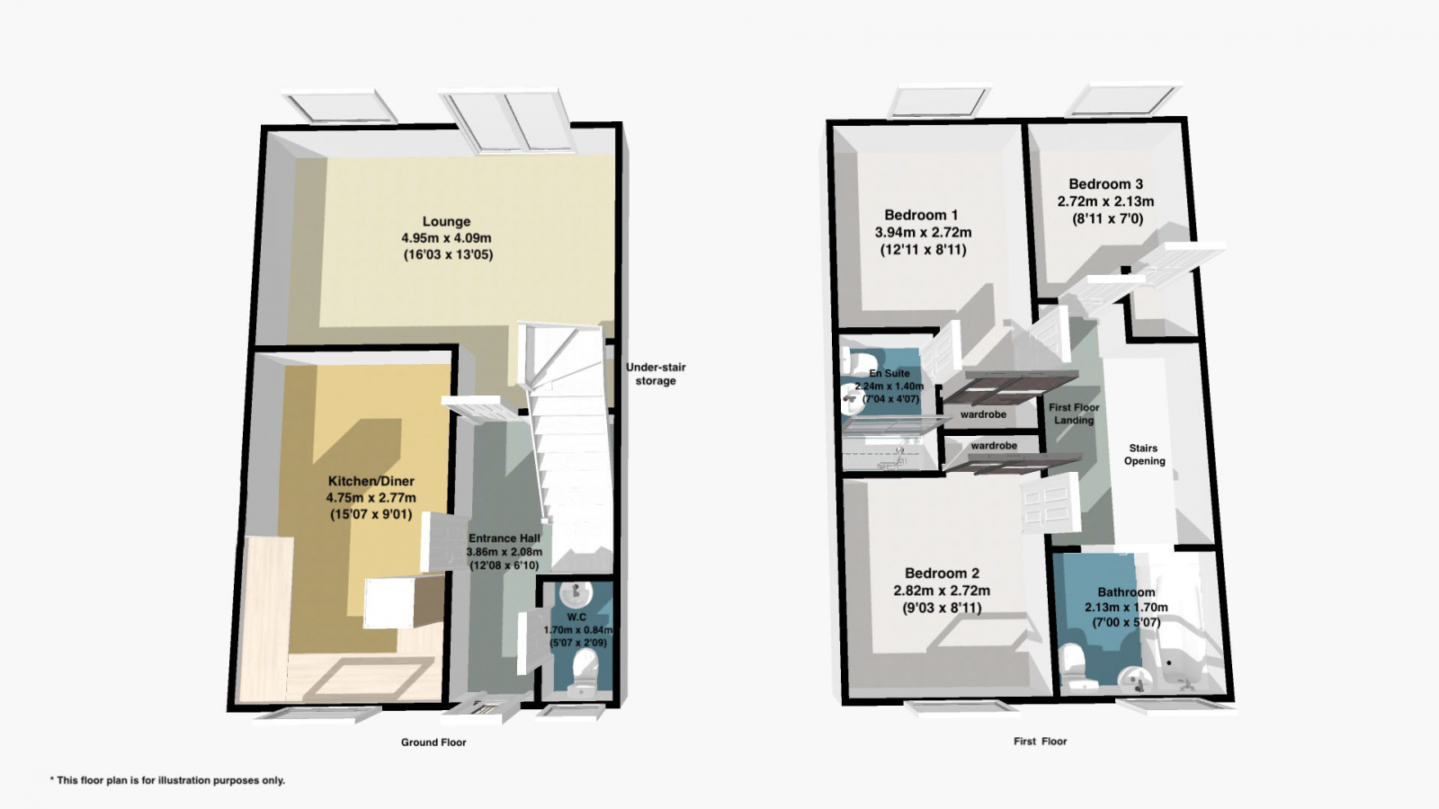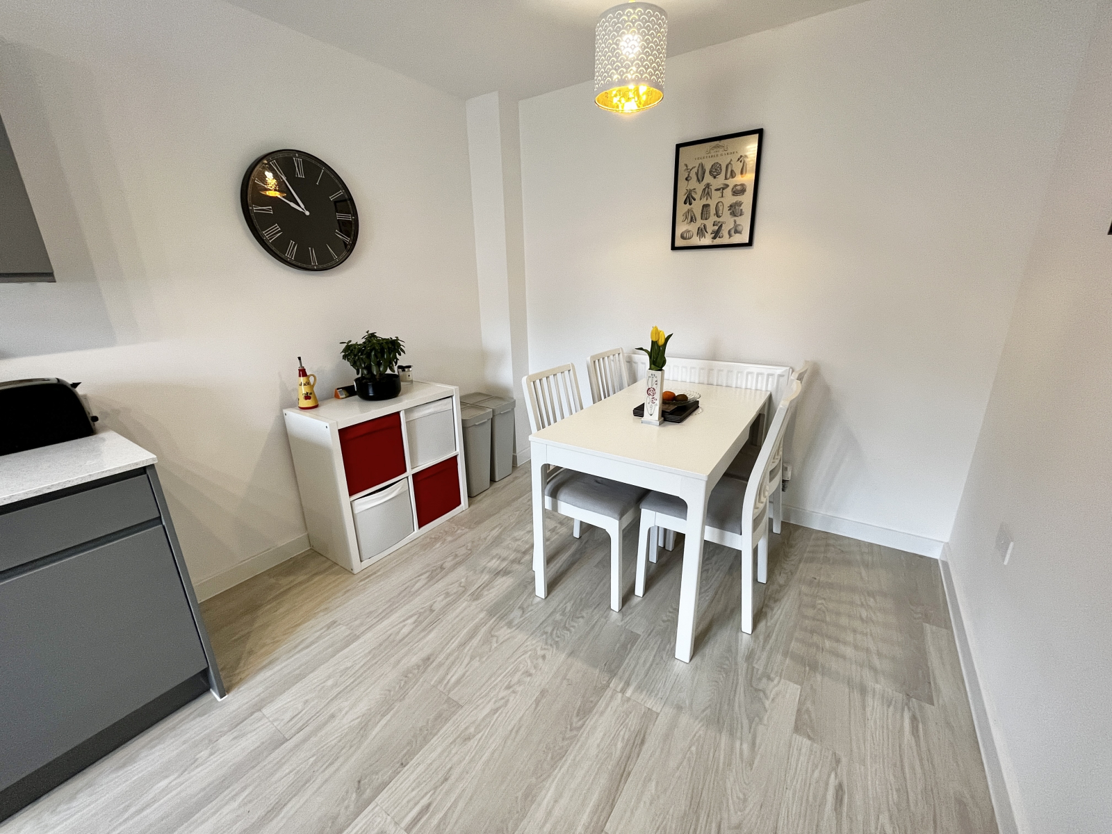 Lounge 4.95m x 4.09m (16'03 x 13'05)Beautifully presented with UPVC double-glazed patio doors giving access to the garden and UPVC double-glazed window to rear aspect. Karndean wood effect flooring throughout and two feature ceiling lights. Range of double power points and radiator. Door to understairs storage cupboard having power point, with storage space, eletrical consumer unit, and fibre internet point.