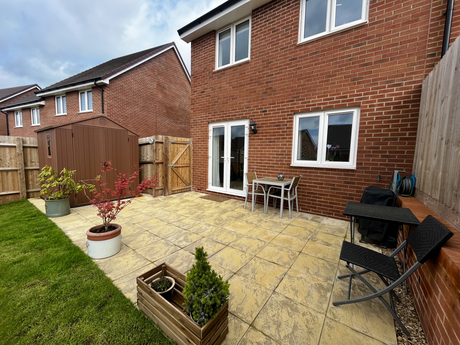 To the rear the enclosed garden has a large upgraded patio seating area to enjoy outdoor living. The rest of the garden is laid to lawn with a garden shed and side access.
