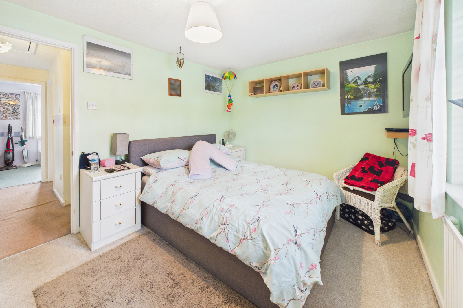 UPVC double-glazed window to the front aspect with radiator beneath. Carpeted flooring, central ceiling lighting, power points, and an excellent range of fitted wardrobes offering ample hanging space and storage.