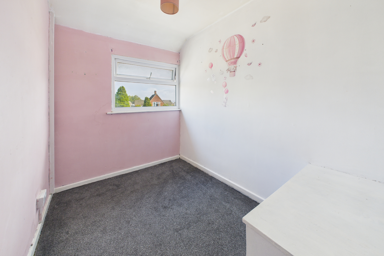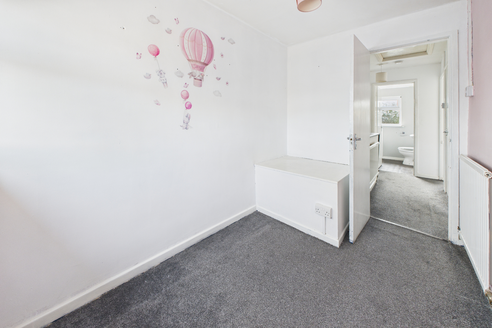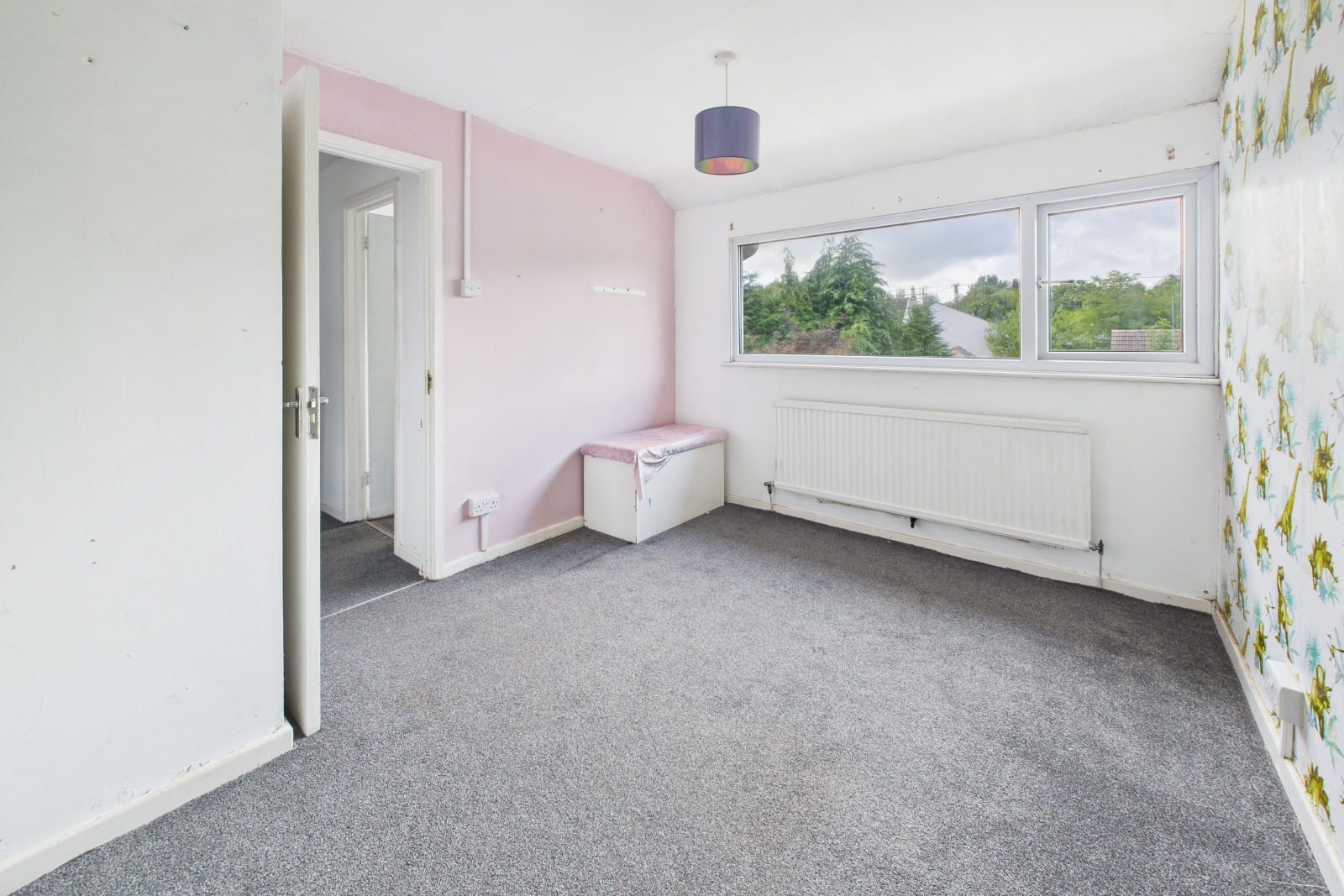 UPVC double-glazed window to front aspect, carpeted flooring, wall-mounted radiator, and ceiling light.