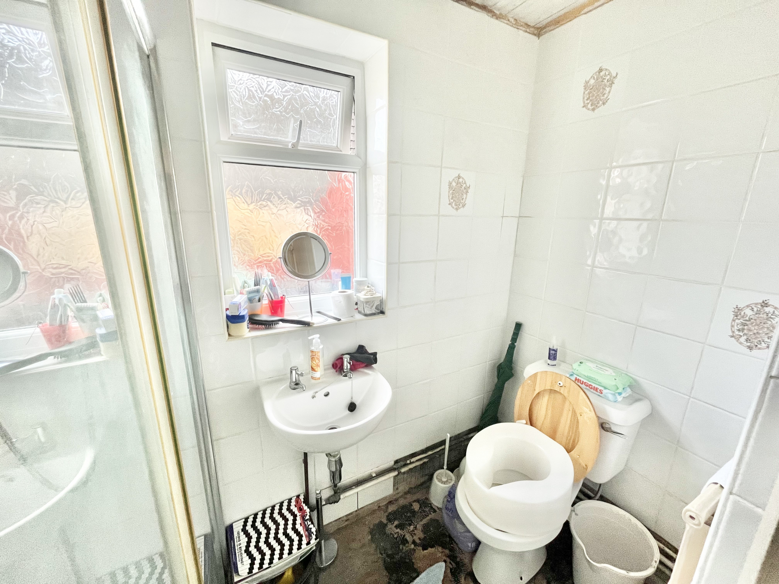 Obscured UPVC double-glazed window to side elevation. Fully tiled with W.C. and wash hand basin. Double step-in shower having electric shower and attachments. Shelving area for storage.