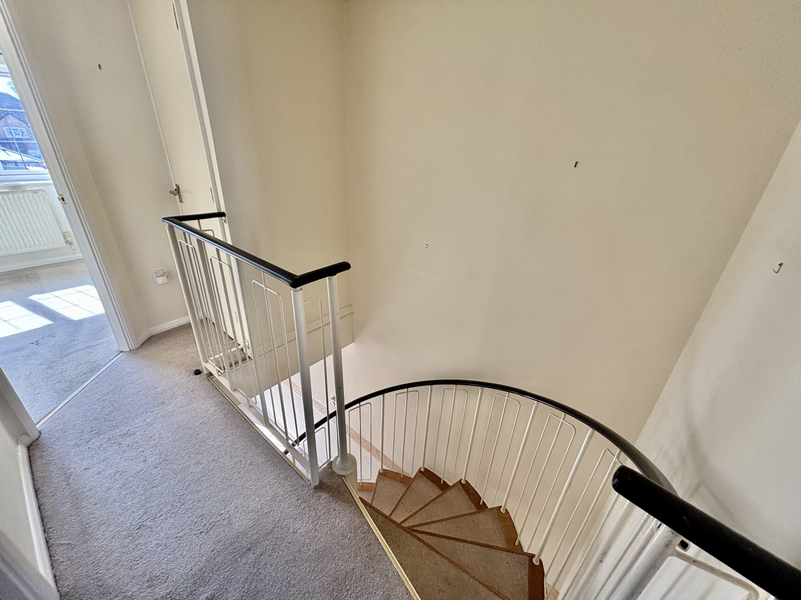 Gallery style with carpeted flooring throughout. Doors leading off to bedrooms and airing cupboard. Lighting and power point.