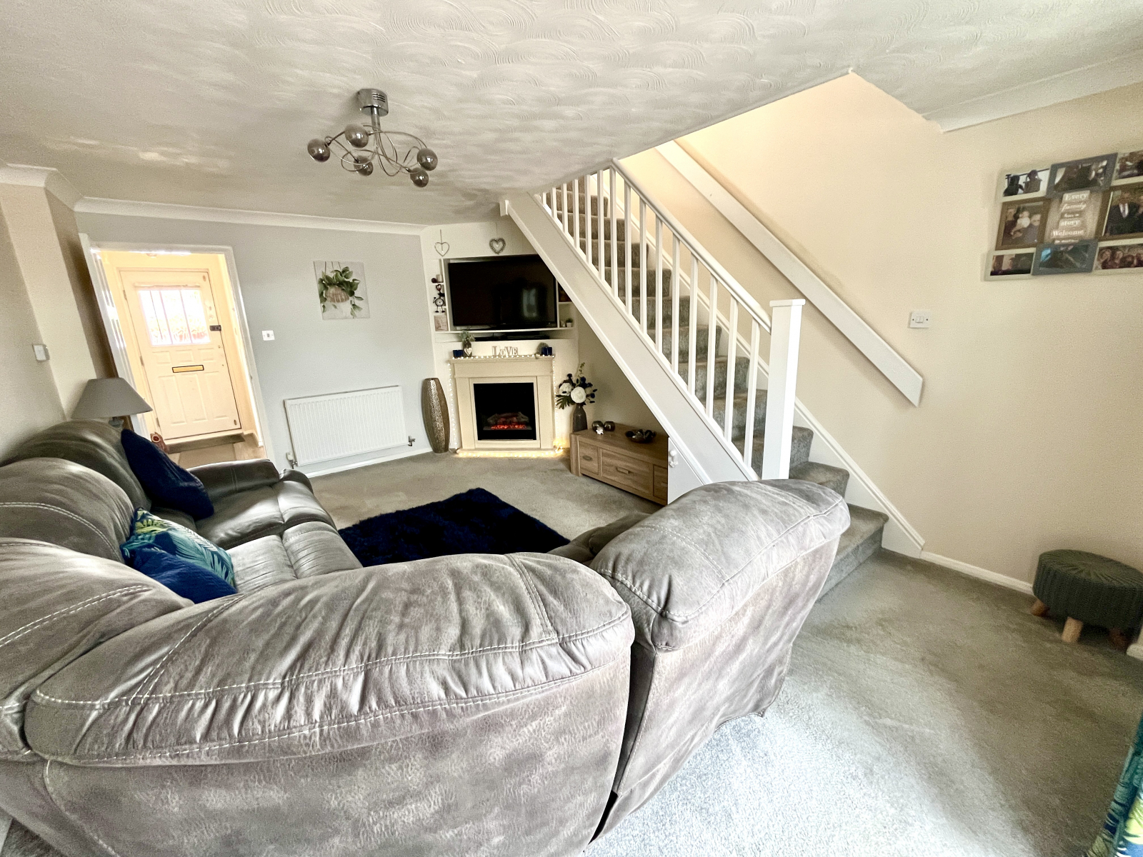 Lovingly modernised by the current owners. This spacious and cosy lounge is carpeted throughout with a feature media wall and flame effect fireplace. UPVC double-glazed doors and UPVC double-glazed window to rear. Open carpeted stairwell to the first floor. Central lighting and power points. Understairs storage drawer and radiator.