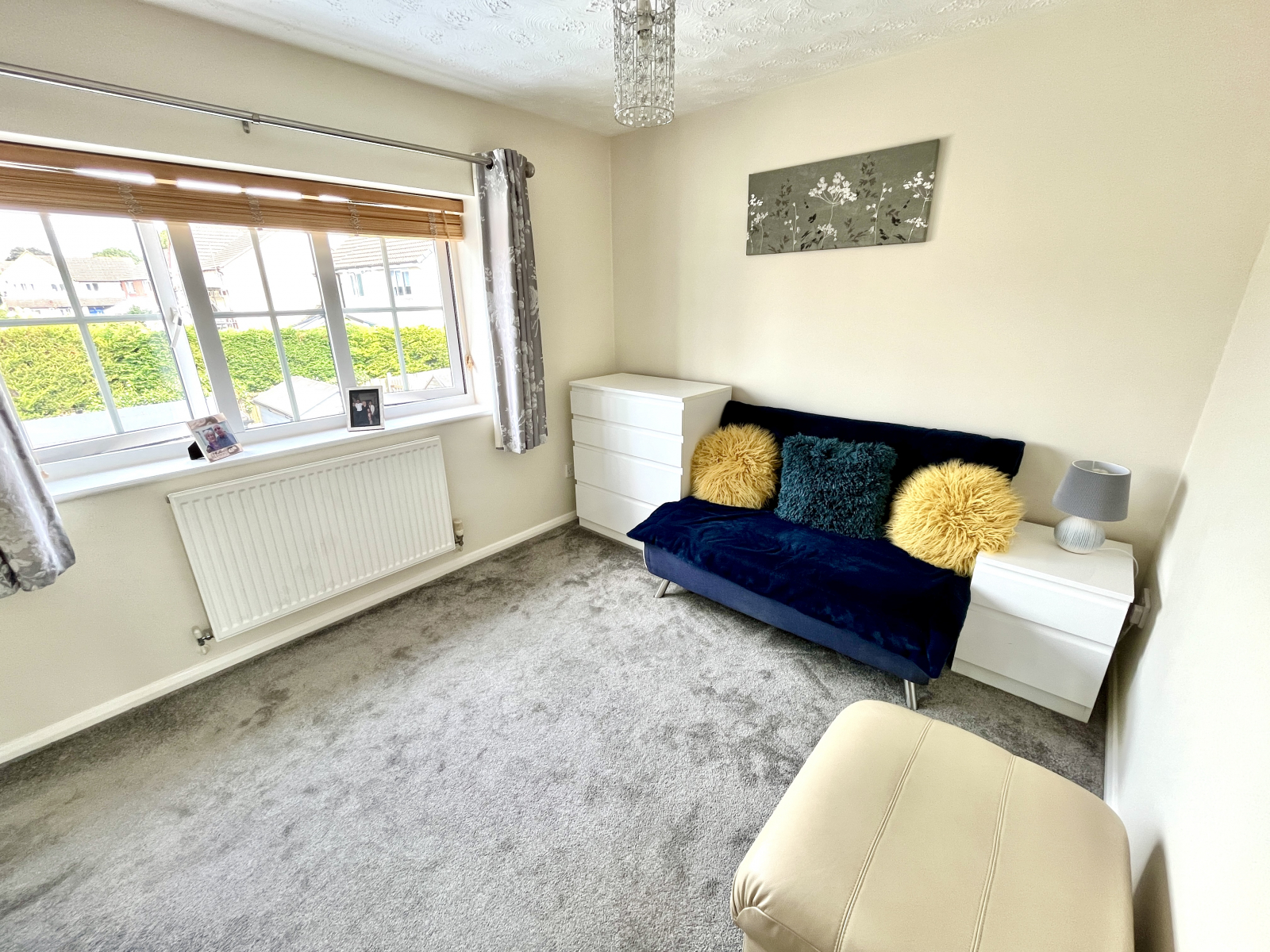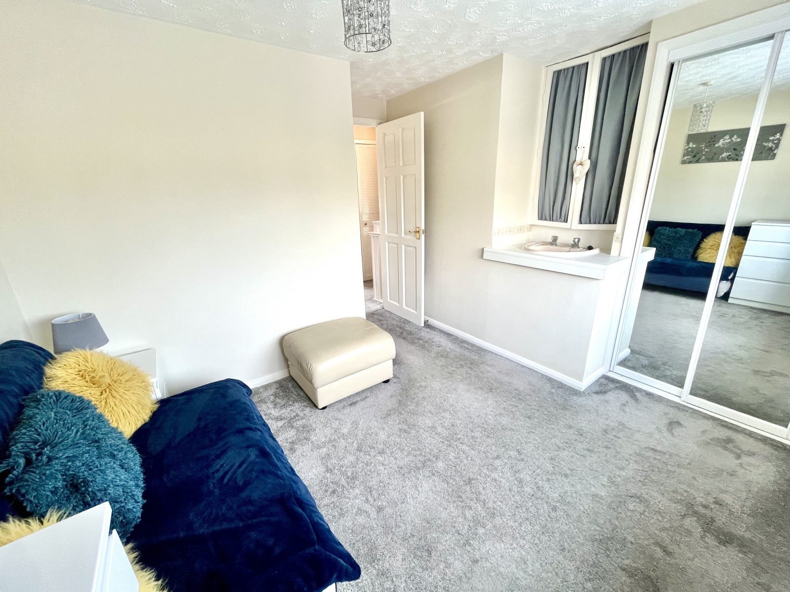 UPVC double-glazed window to rear elevation. Carpeted throughout with radiator. Fitted wardrobe with hanging rails and shelving. Further storage cupboard.