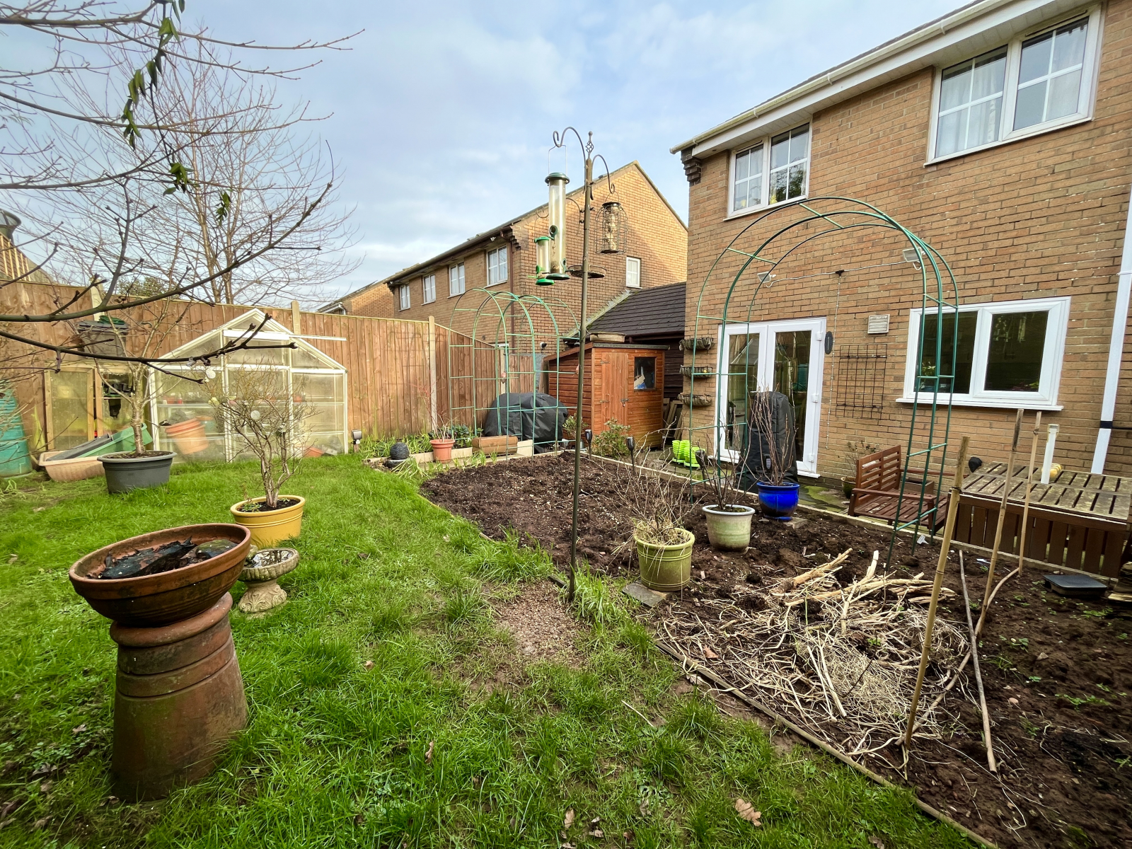GarageUp and over garage door. Power points. Storage above. Half glazed door to garden.
