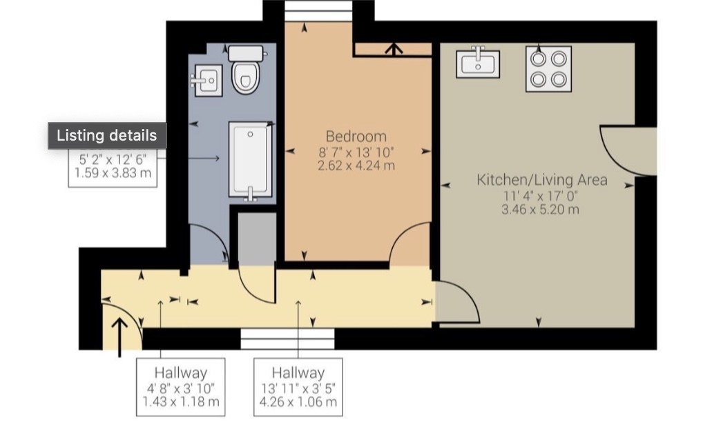 Kitchen / Living Area - 3.46m x 5.20m (11'4" x 17'0") - Upvc door giving access to balcony.