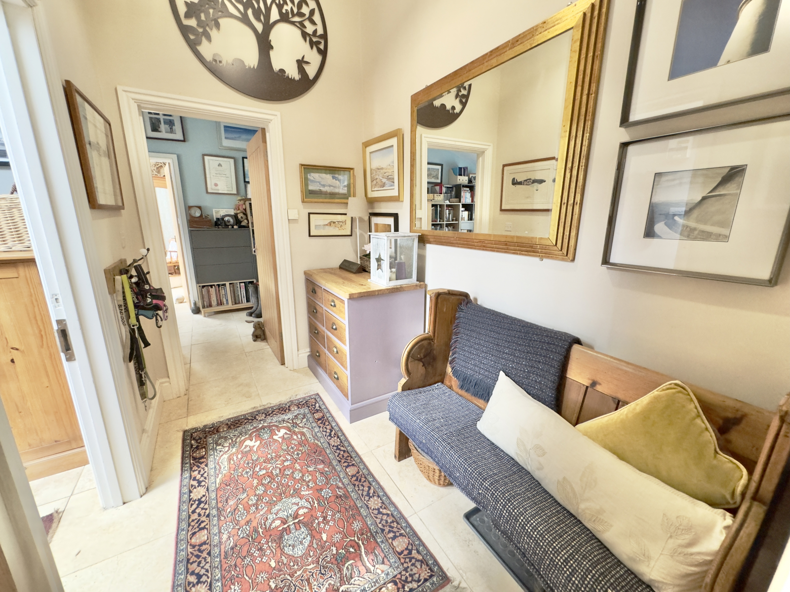 Vaulted character ceiling and tiled flooring with doors leading off. Pendant central lighting and coat hooks. Wall-mounted central heating controls. Half-glazed door leading to;