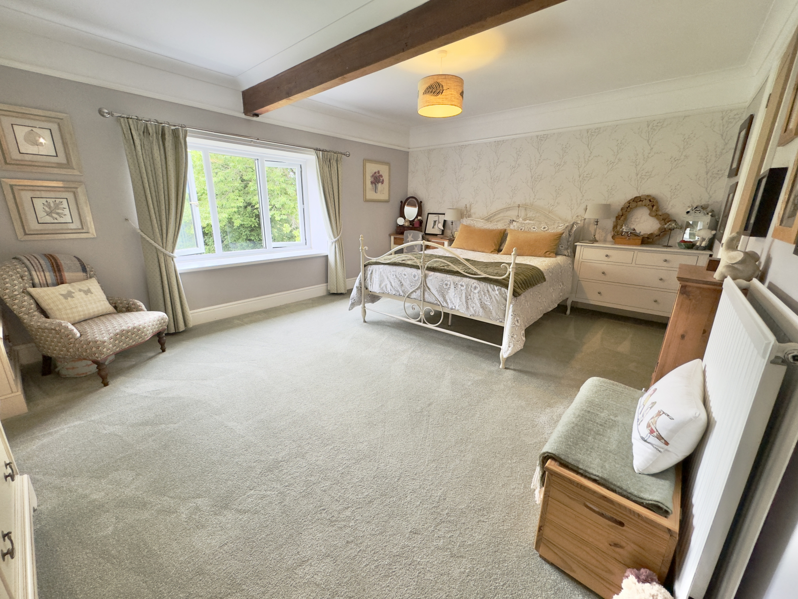 The perfect guest room with a fabulous garden outlook. Carpeted flooring throughout with picture rail and coved ceiling. Spacious and bright with a large UPVC double-glazed window. Central pendant lighting and ceiling beam. Radiator and power points. Door to;