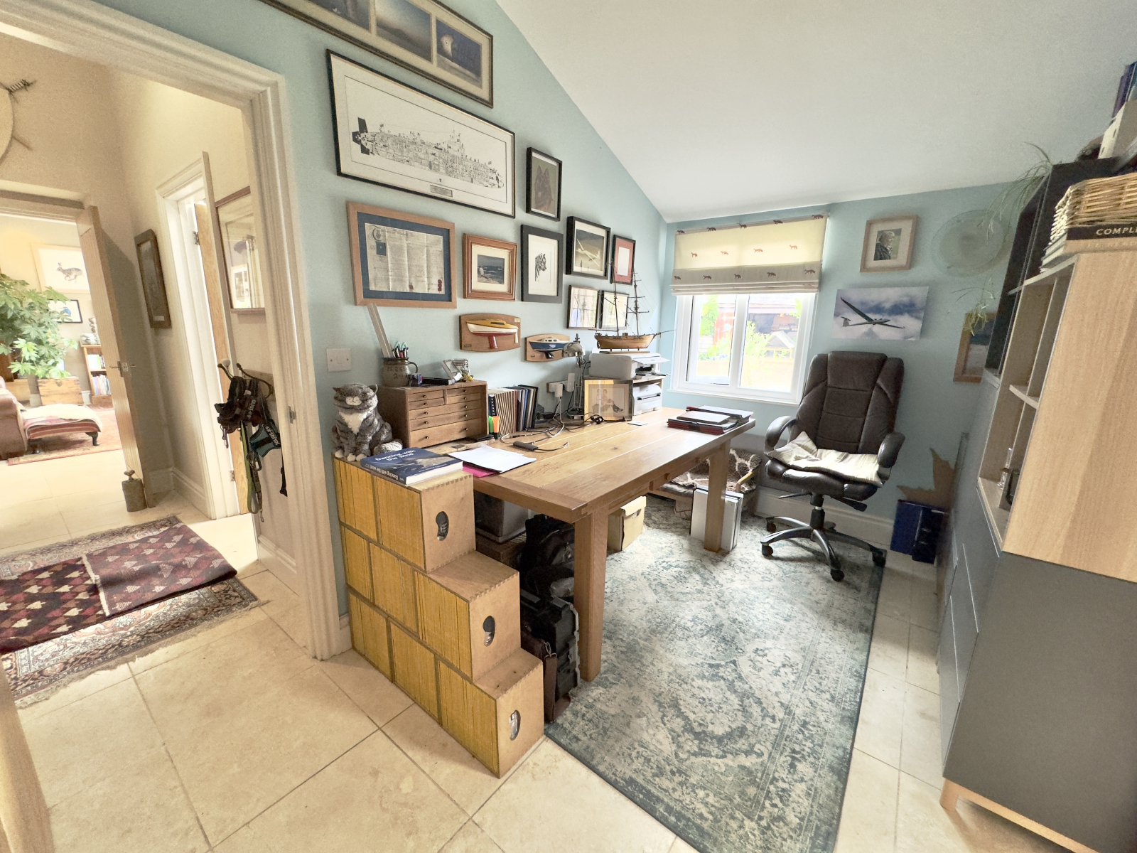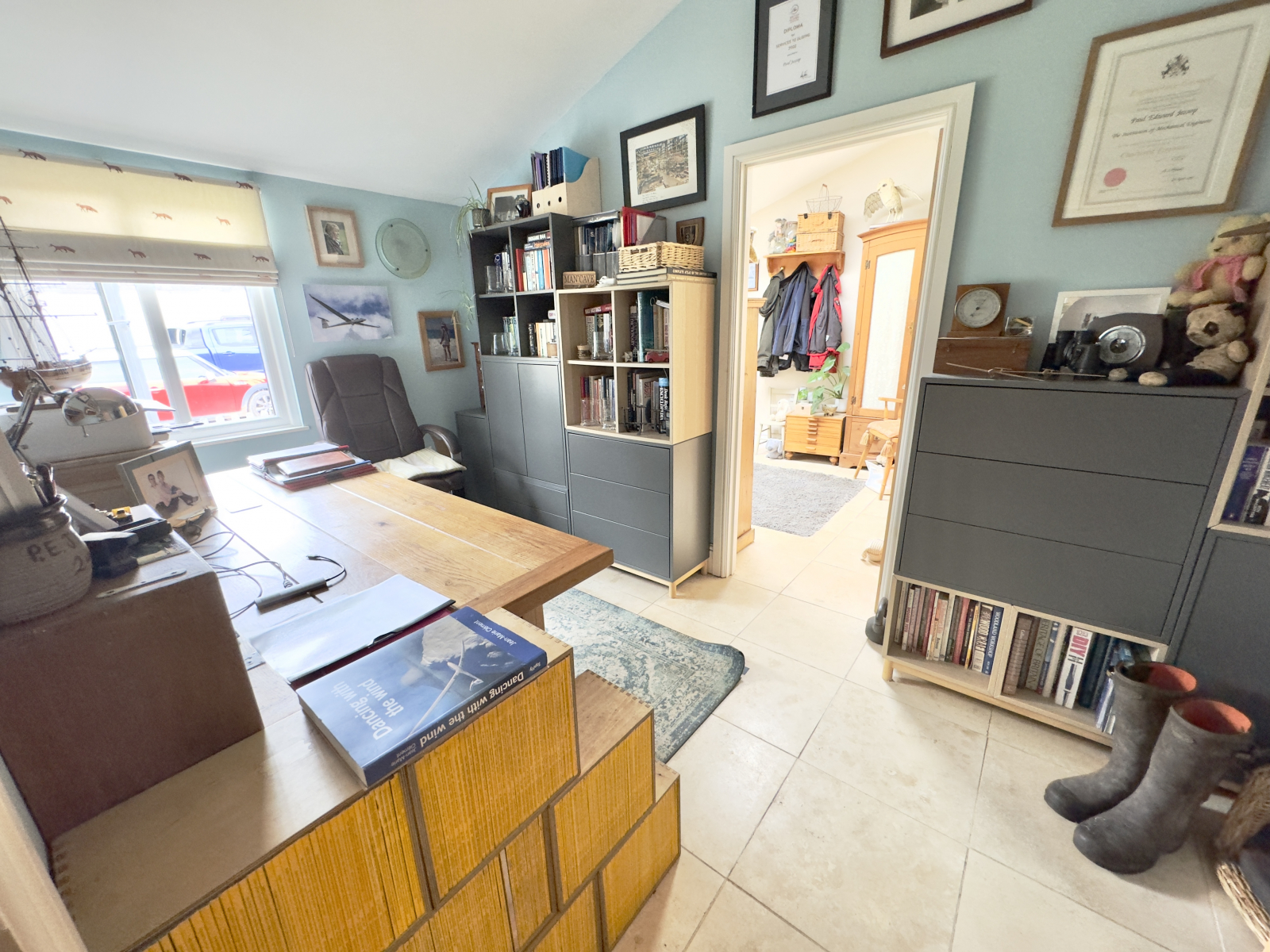 UPVC double-glazed window to the front aspect with door giving access to the courtyard. Tiled flooring and loft window. Exposed beam and lighting. Door to large, fitted cupboard space with an abundance of storage.
